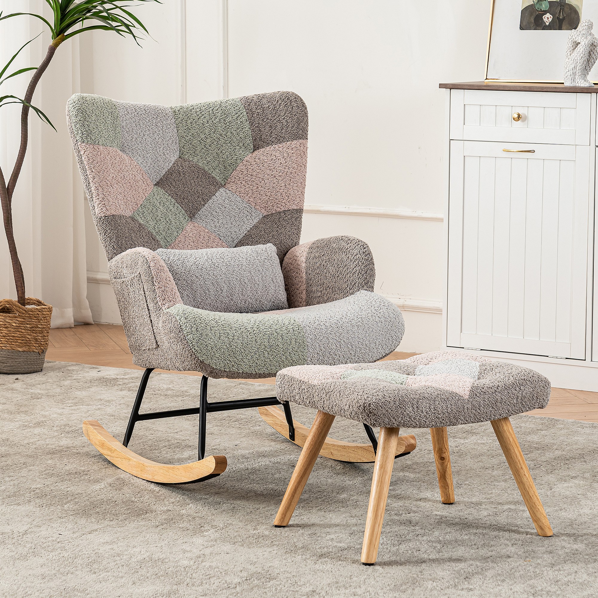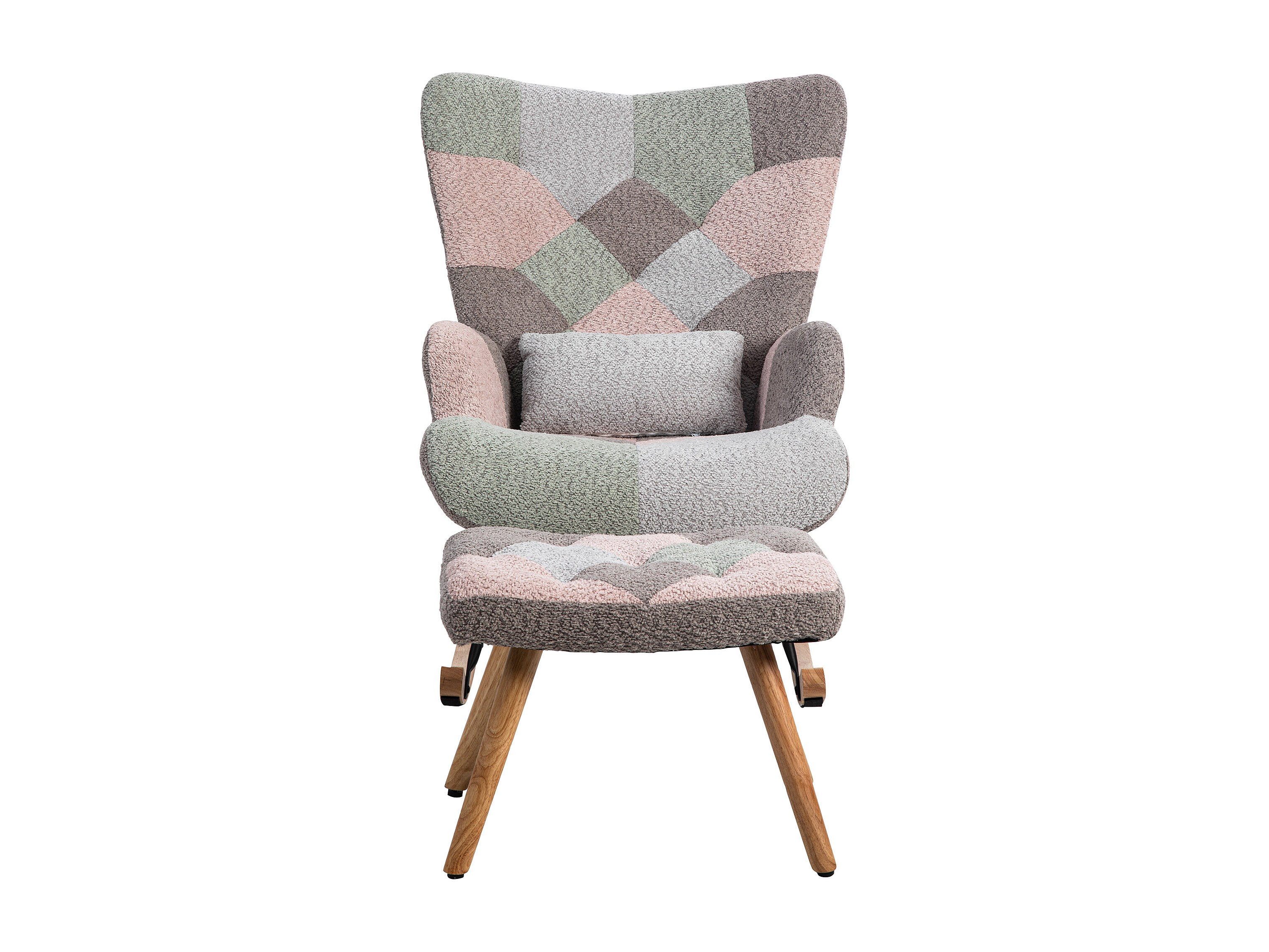 Schommelstoel met voetsteun - met kleurrijk patchworkpatroon - Multicolour