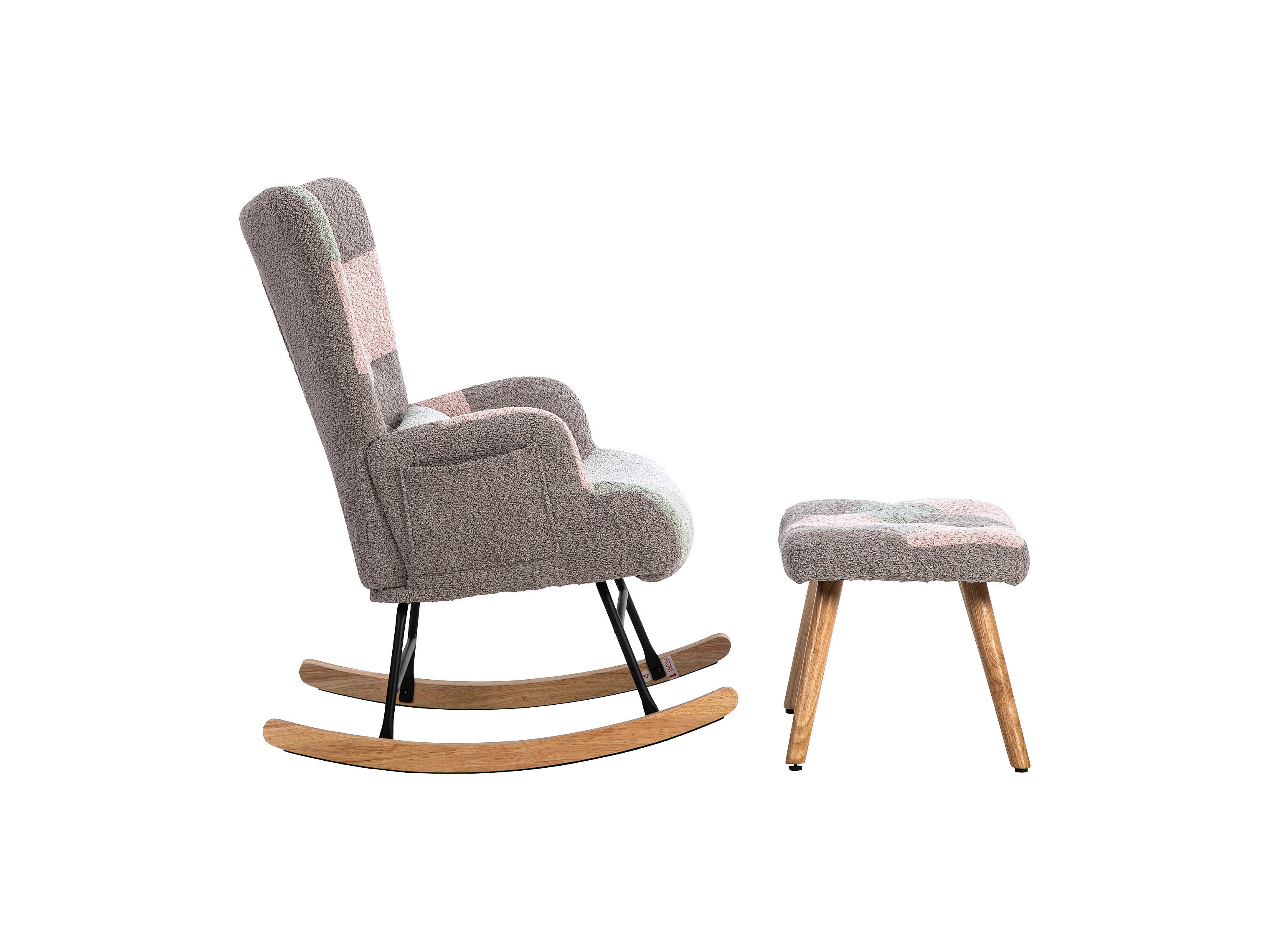 Schommelstoel met voetenbankje, splitsen, schuim + vering - 69,5x88,5x50cm - Kleurrijk