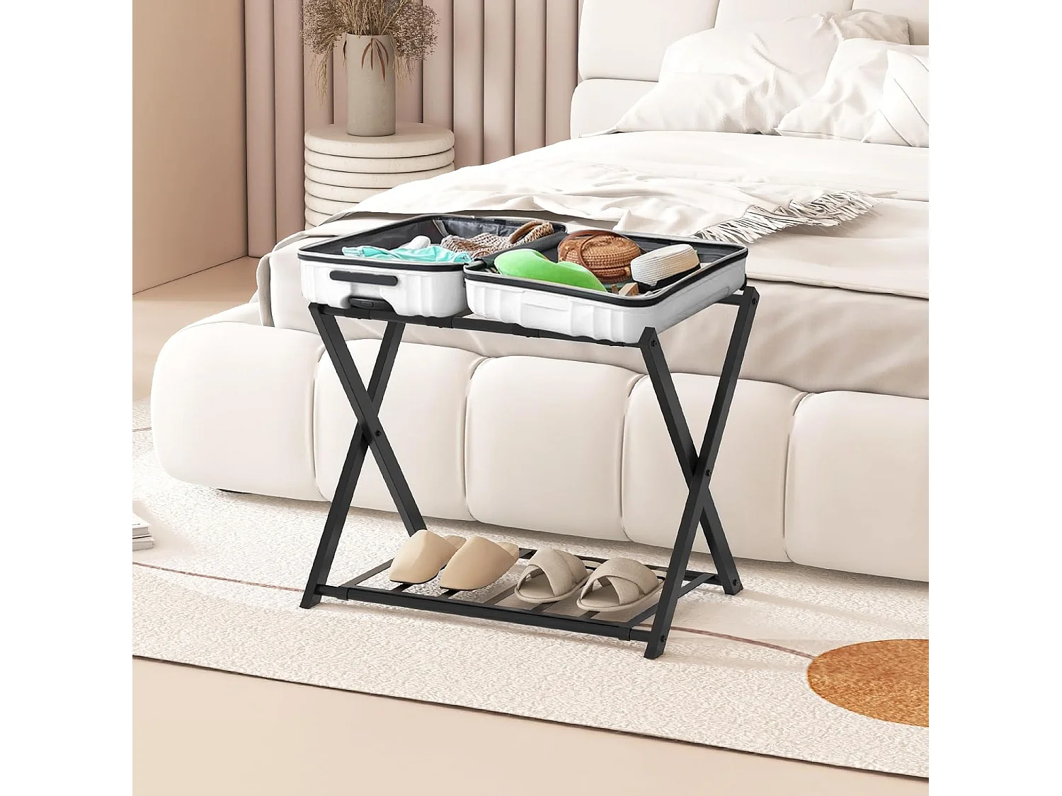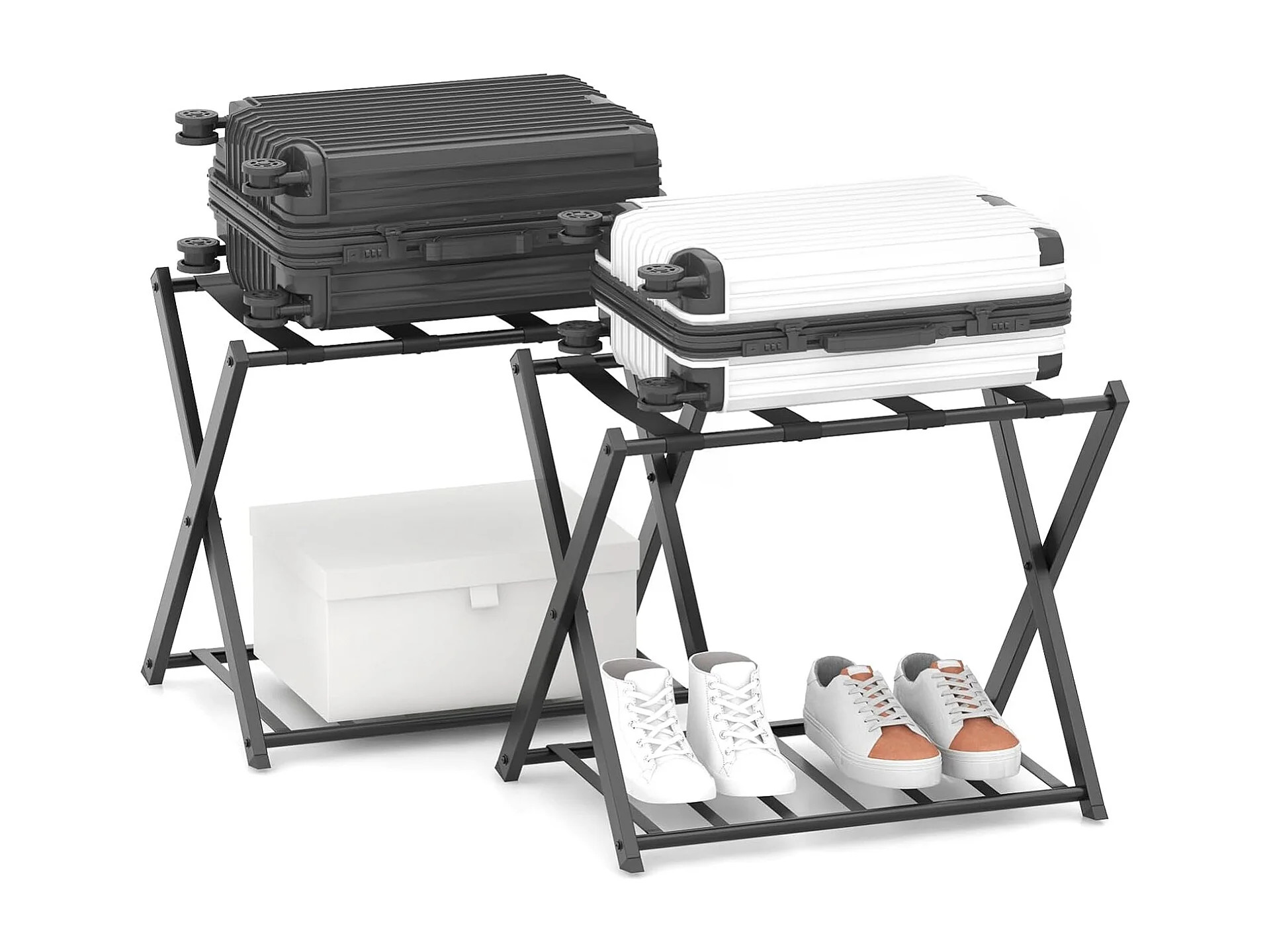 Kofferstandaard, inklapbaar, bagagerek met 2 verdiepingen design, kofferbok, metalen kofferstandaard voor slaapkamer, logeerkamer, hotel (set van 2, zwart)VH33647