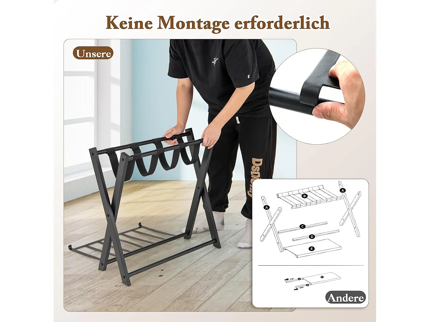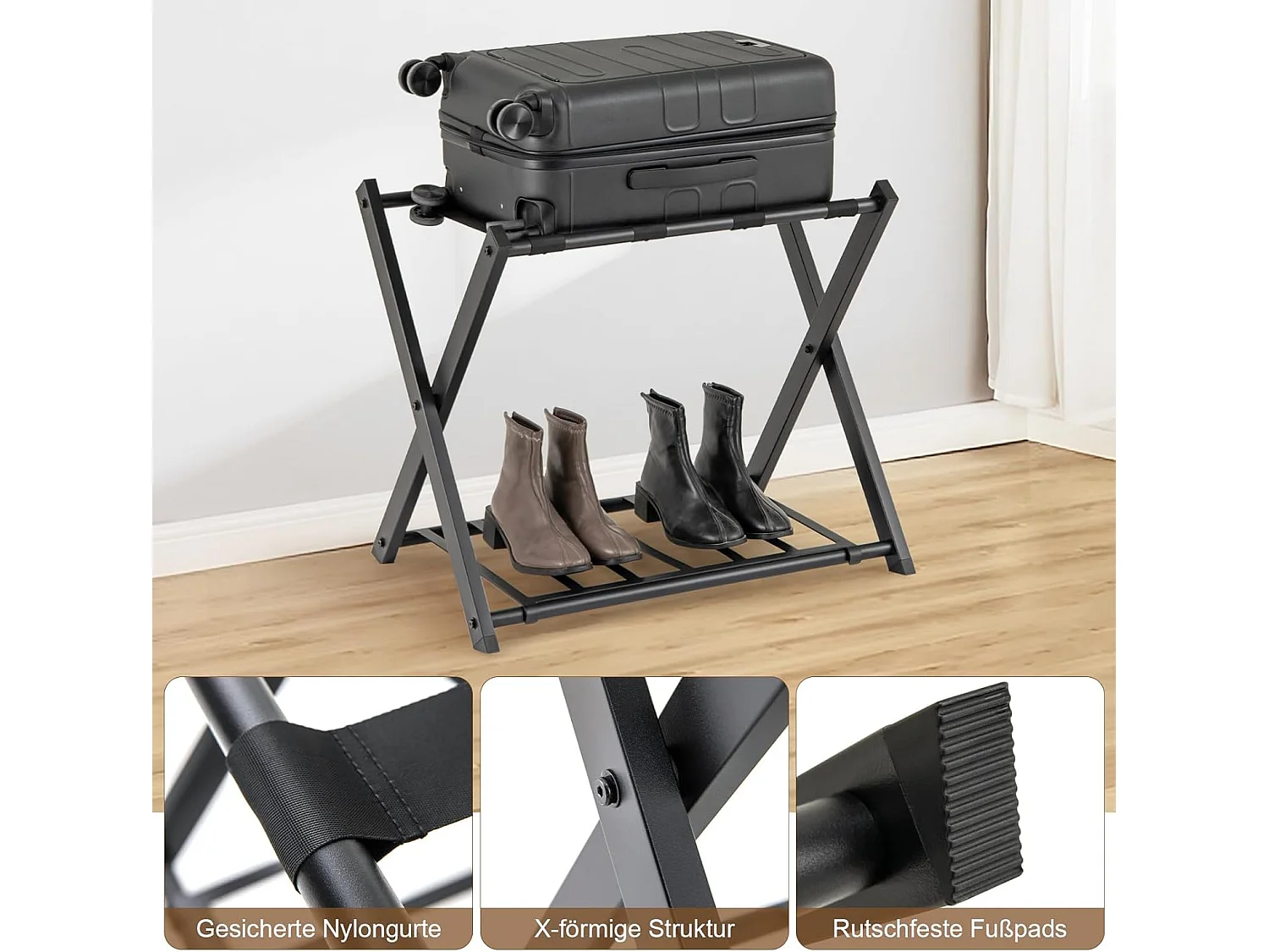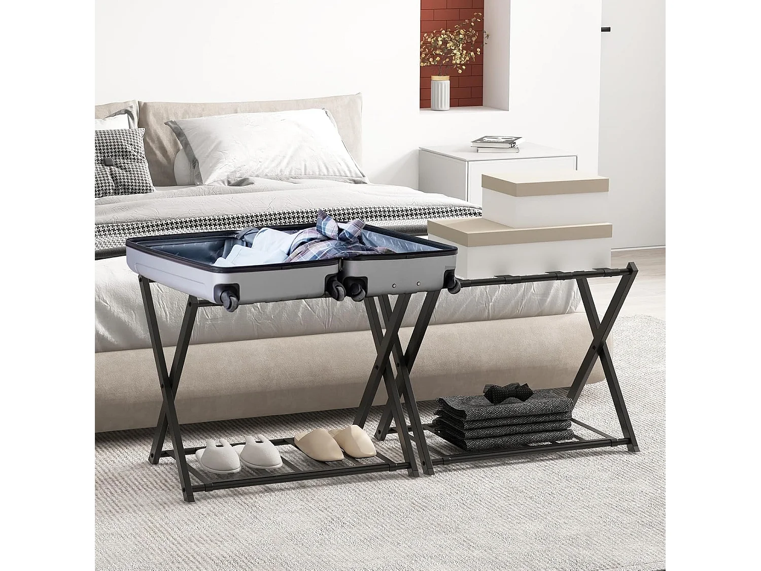 Kofferstandaard, inklapbaar, bagagerek met 2 verdiepingen design, kofferbok, metalen kofferstandaard voor slaapkamer, logeerkamer, hotel (set van 2, zwart)VH33647