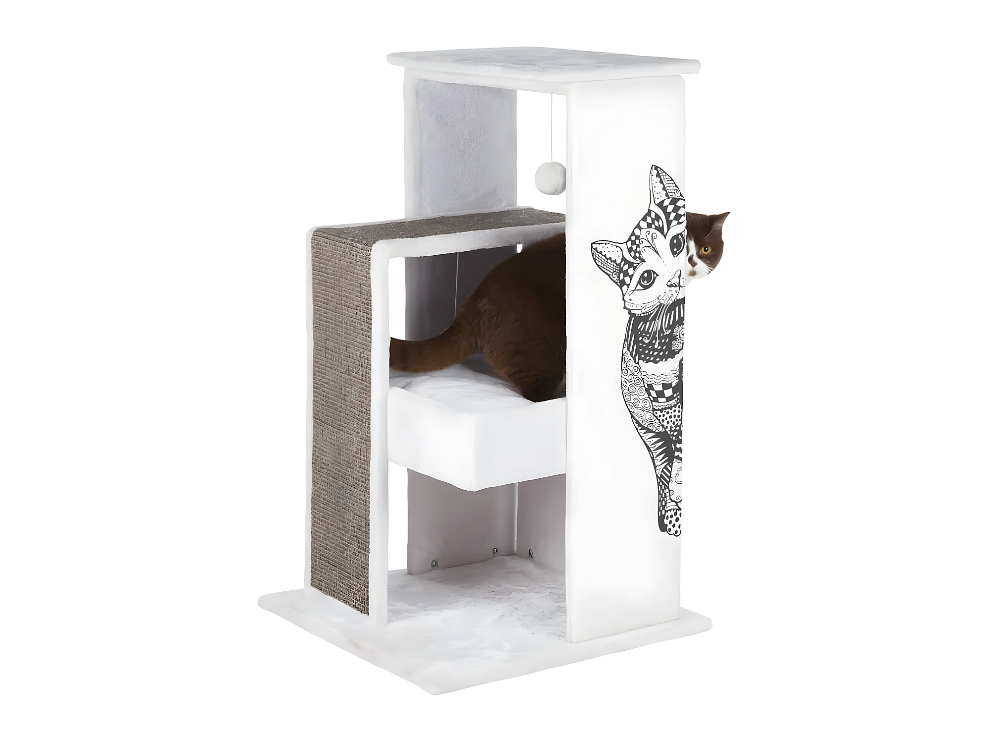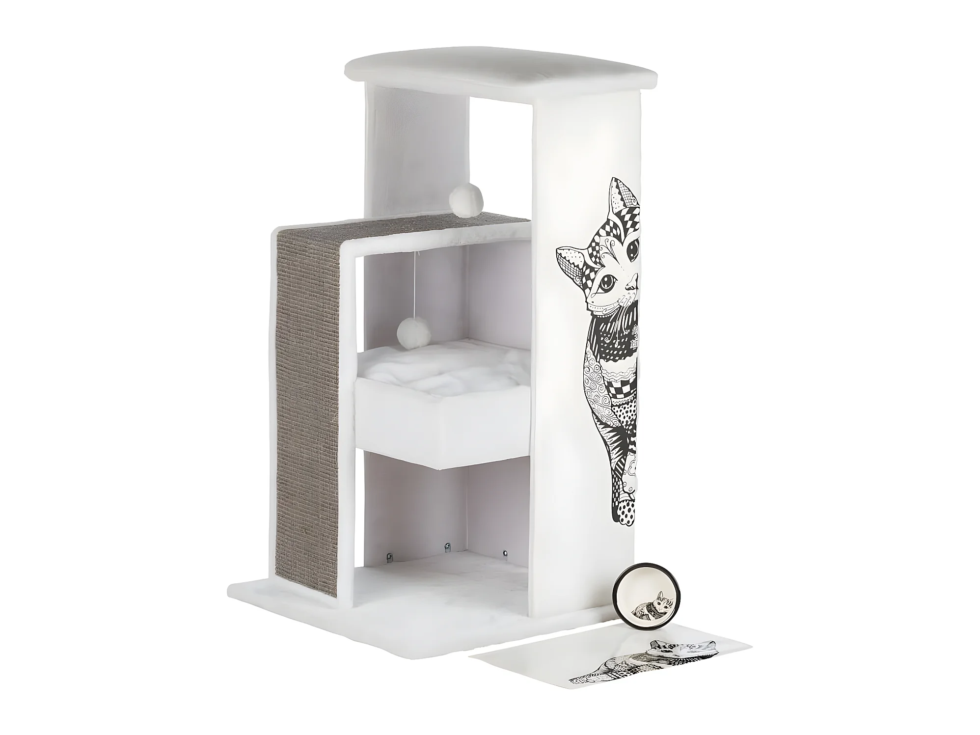 Krattenboom - 60 x 48 x 135 cm - met 3 platforms + 1 huisje + afneembare matten - MDF - Wit