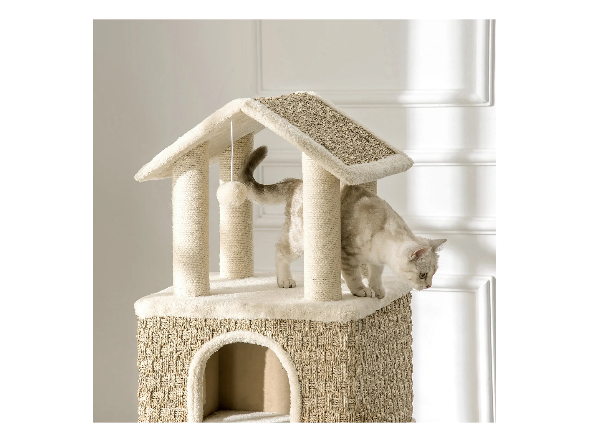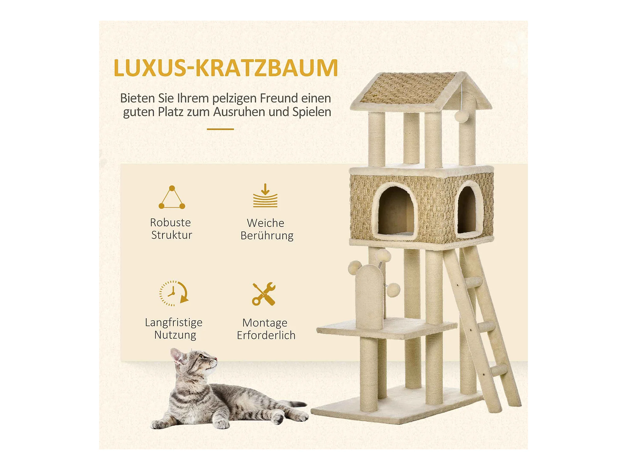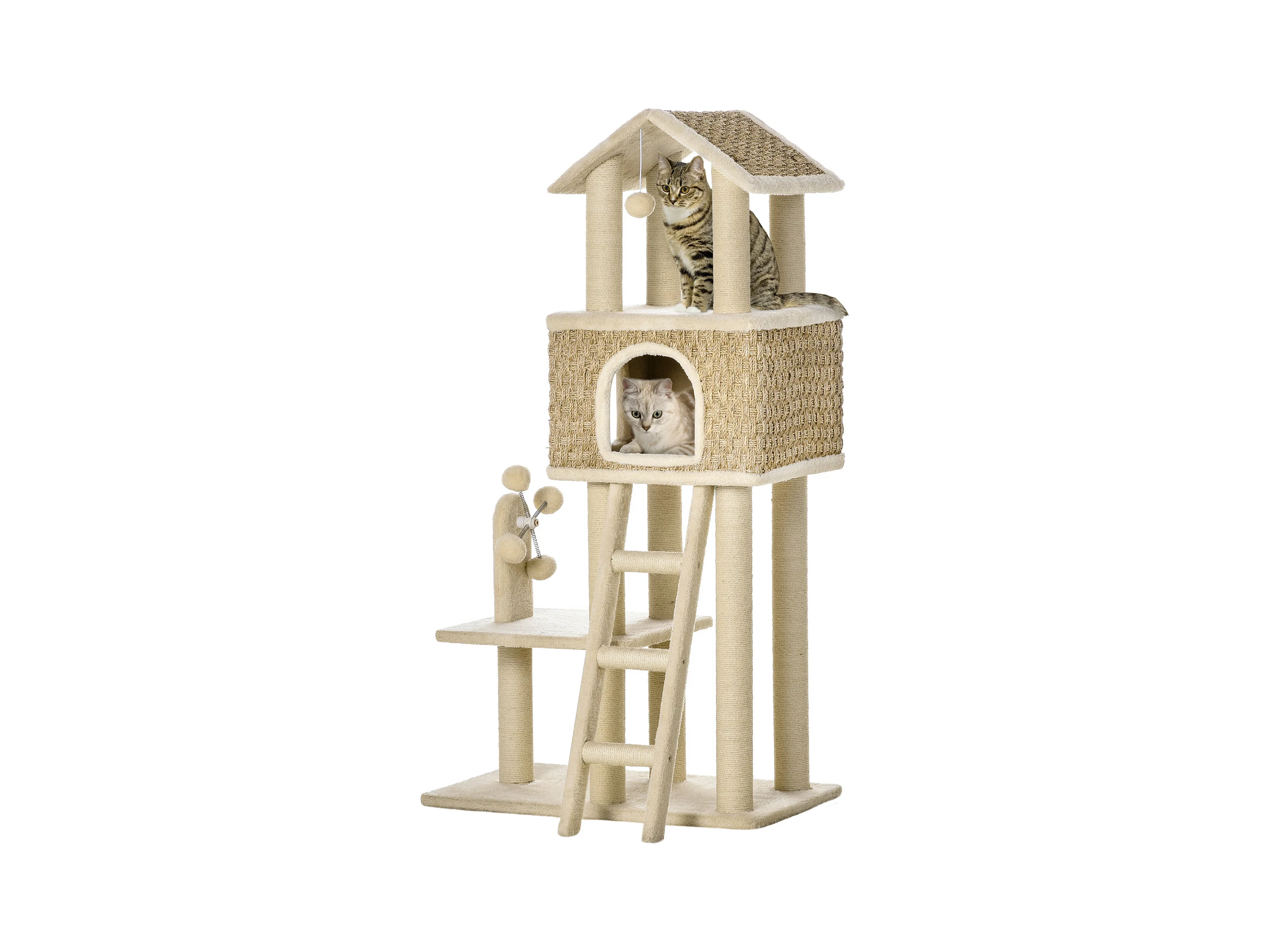 Kattenboom met sisal, platform en kussen, hout, beige (45x45x91 cm)
