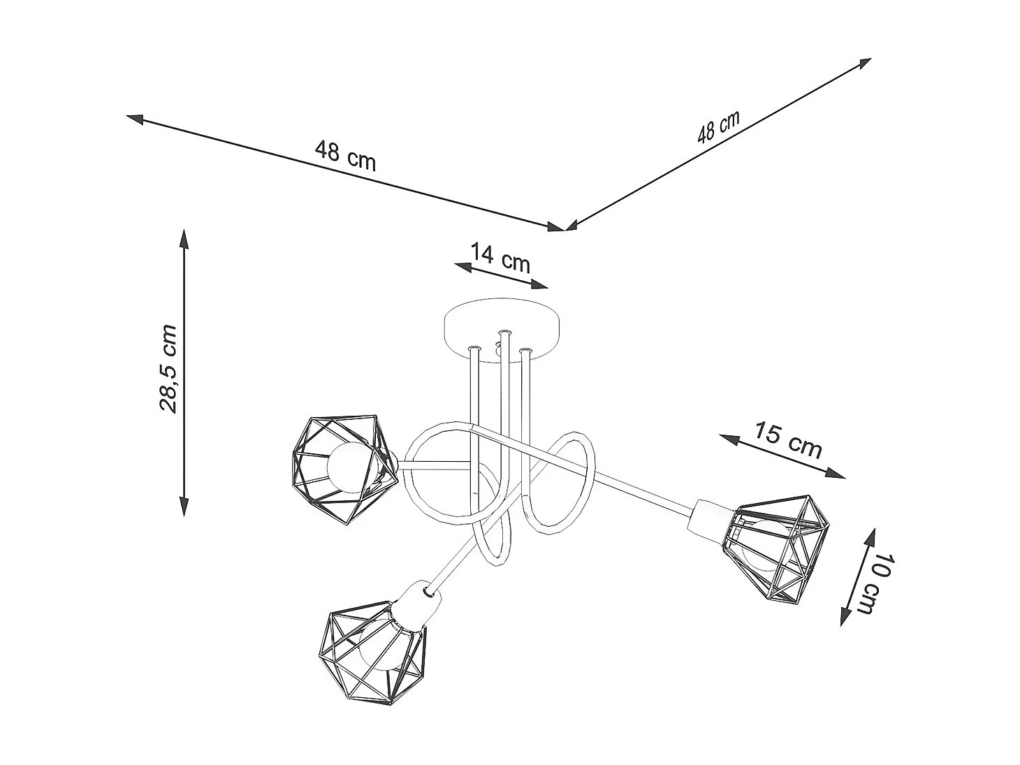 Kroonluchters Celubi modern van - 3 lichtbronnen 4000K - L.48 x H.28,5 cm - zwart