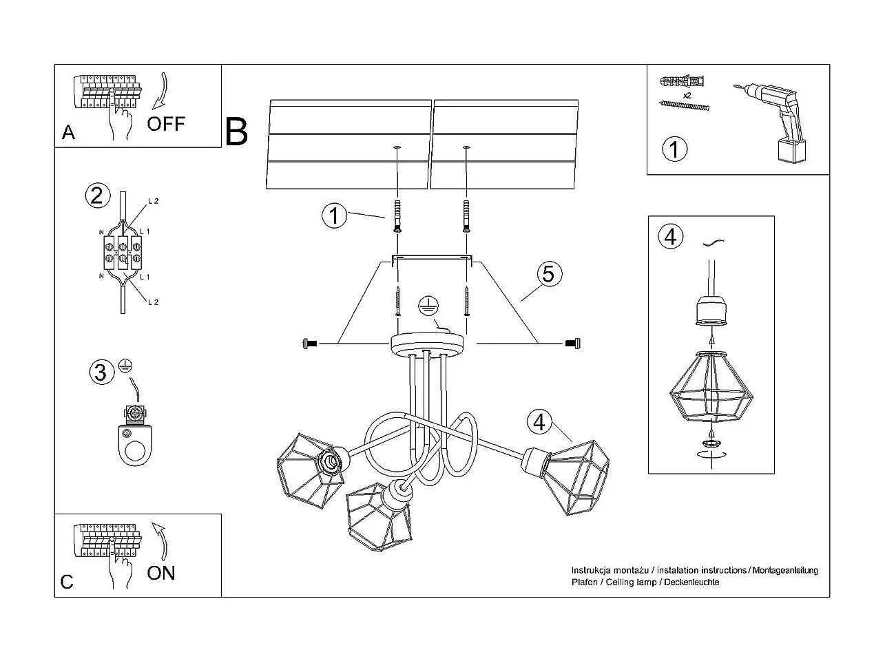 Kroonluchters Celubi modern van - 3 lichtbronnen 4000K - L.48 x H.28,5 cm - zwart
