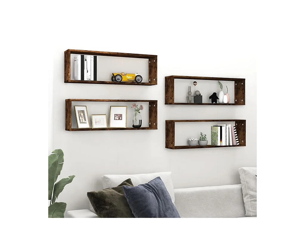 Kubus wandplanken 4 stuks Gerookt eiken 80x15x26,5 cm