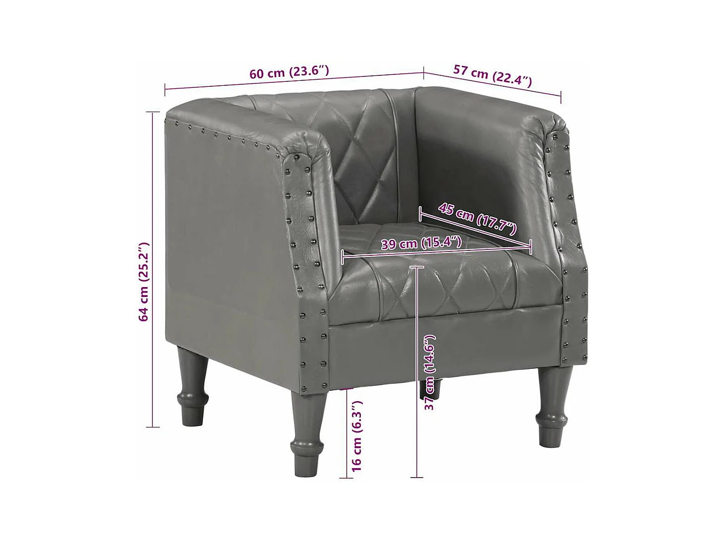 Fauteuil donkergrijs leer 5130 ANGEL CERDA