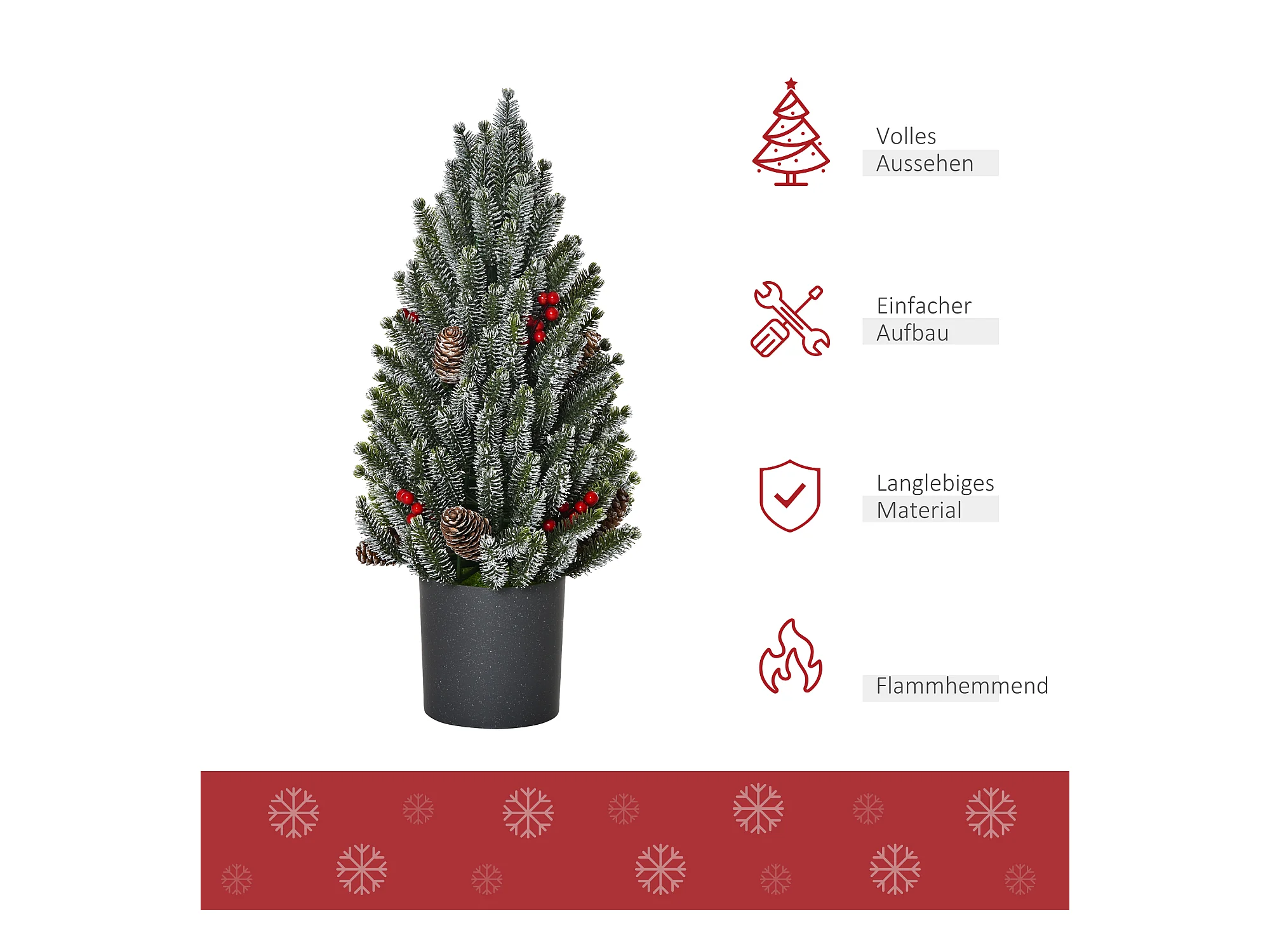 Kunstkerstboom 50 cm, sneeuwmotief, 170 takken, kunststof voet, versierd (Ø27 x 47 cm)