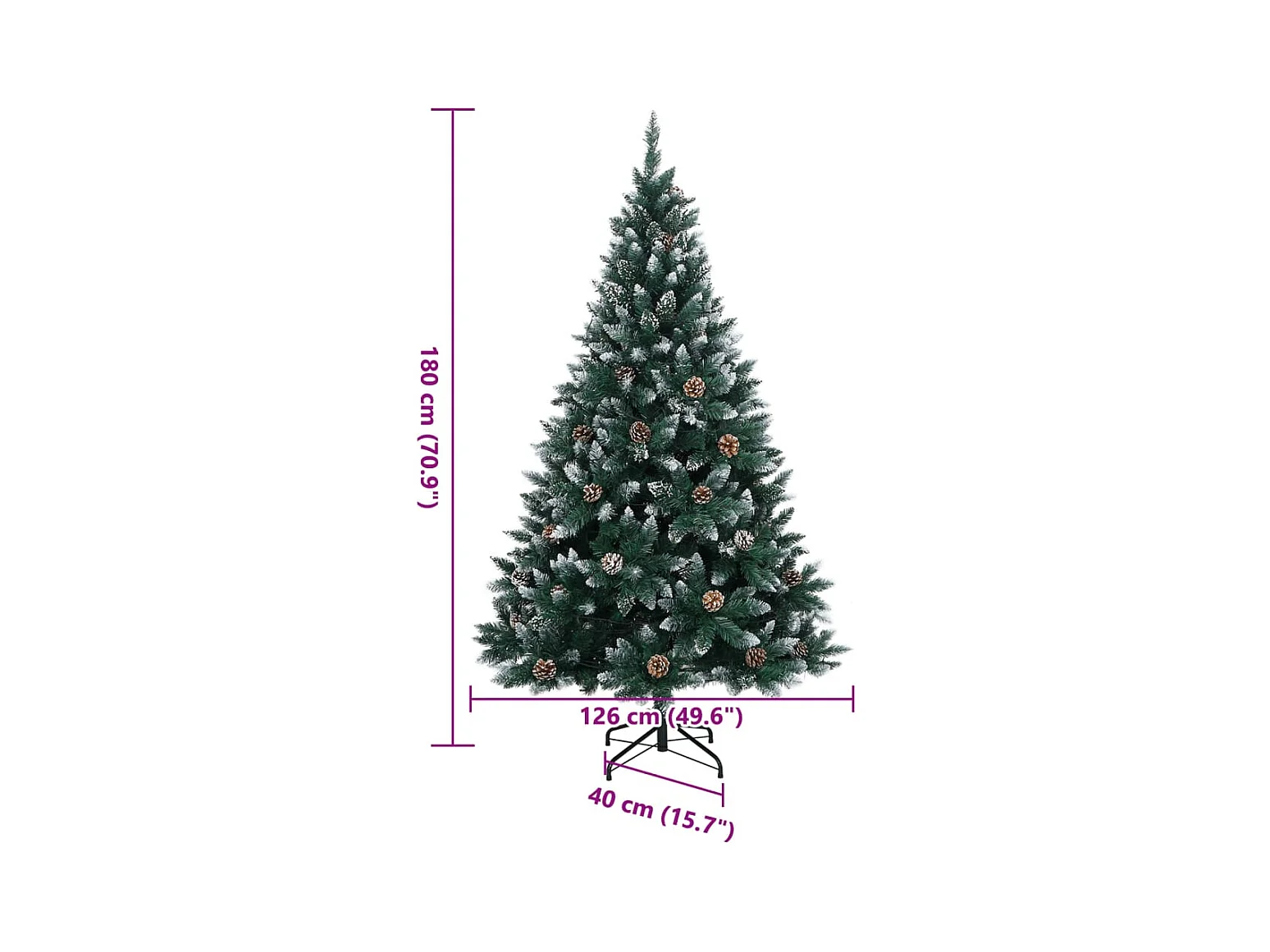 Kunstkerstboom 180 cm met sneeuw, 1942 takken, groen (136x136x180 cm)