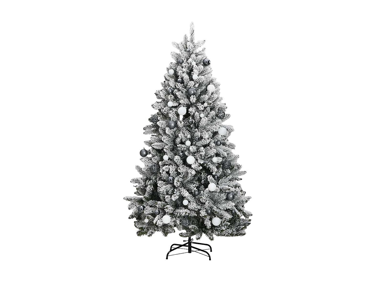 Kunstkerstboom met 300 LED's kerstballen en sneeuw 210 cm