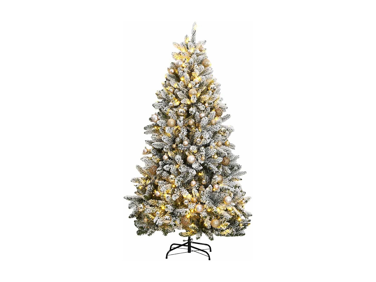 Kunstkerstboom met scharnieren 300 LED's en kerstballen 240 cm