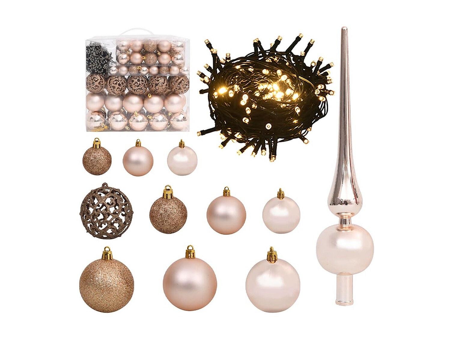 Kunstkerstboom met scharnieren 300 LED's en kerstballen 270 cm