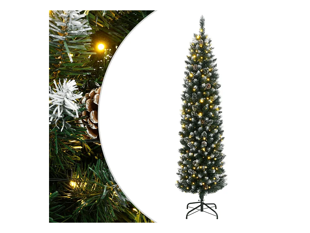 Kerstboom met LED en dennenappels 225 cm PVC en PE groen en wit