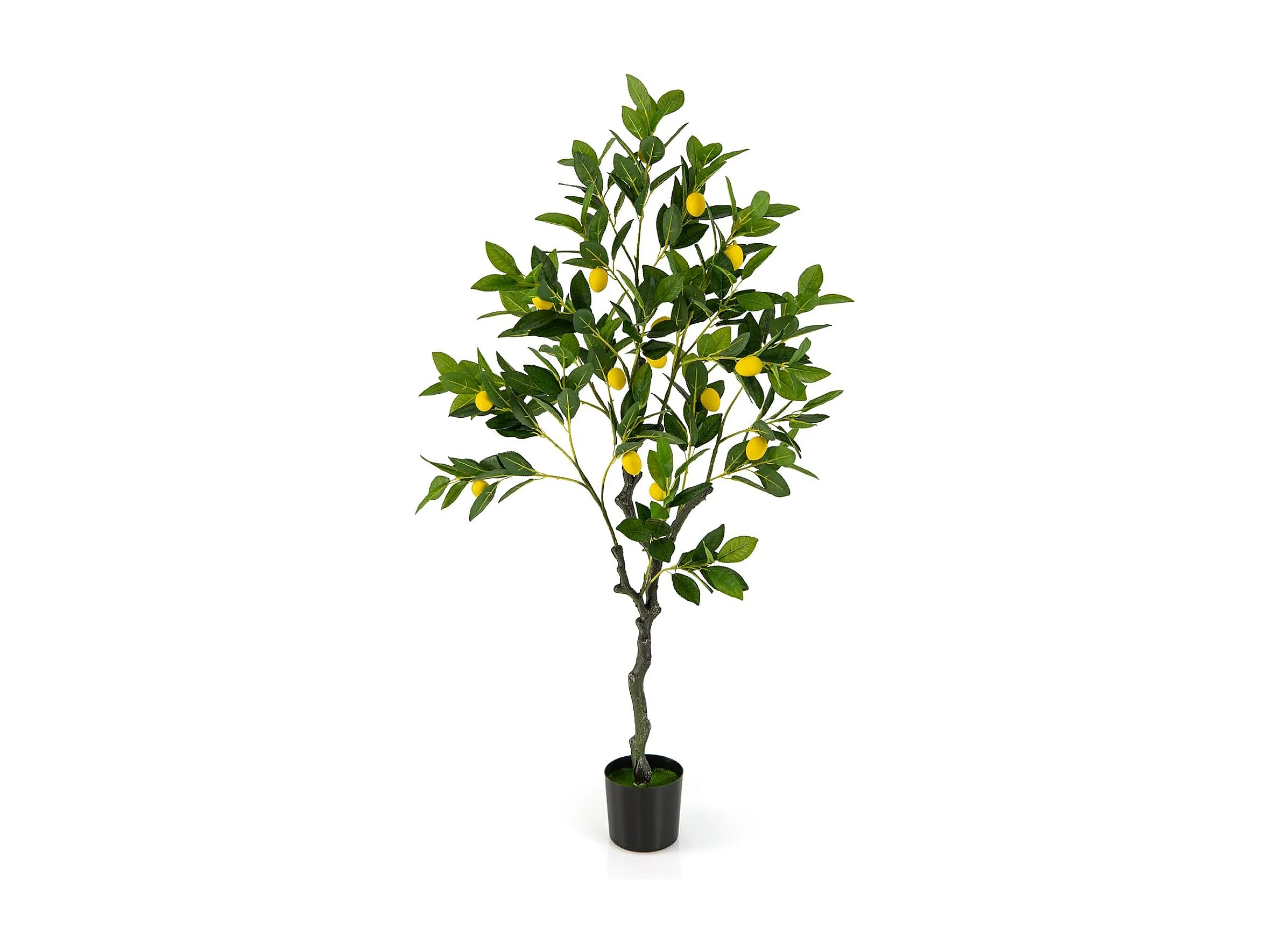 Kunstmatige citroenboom, limonenboom met pot en 18 citroenen, kunstplant met vruchten, citrusplant, potplant, kamerplant,kantoor, decoratie, groen + geel (120 cm)