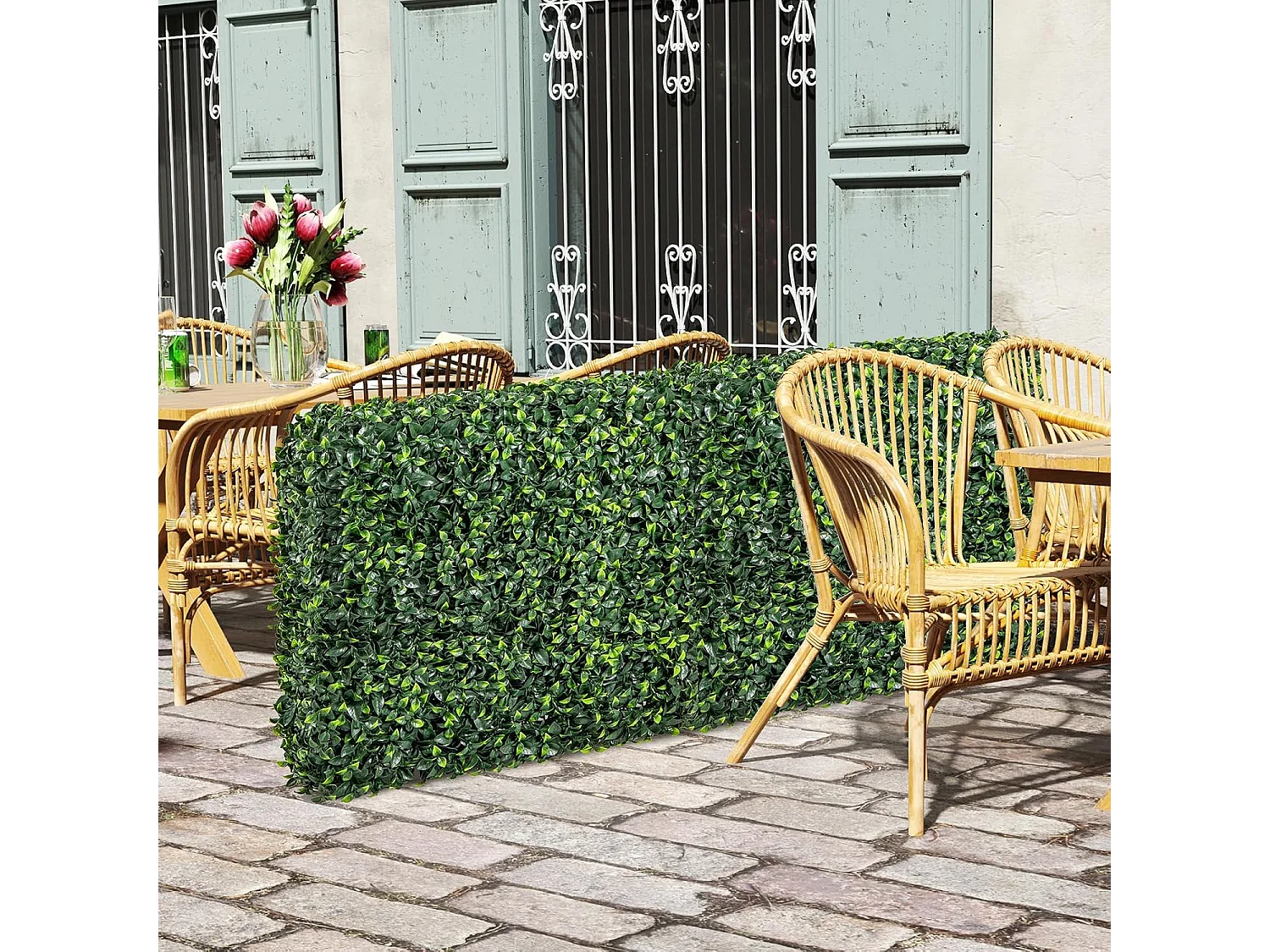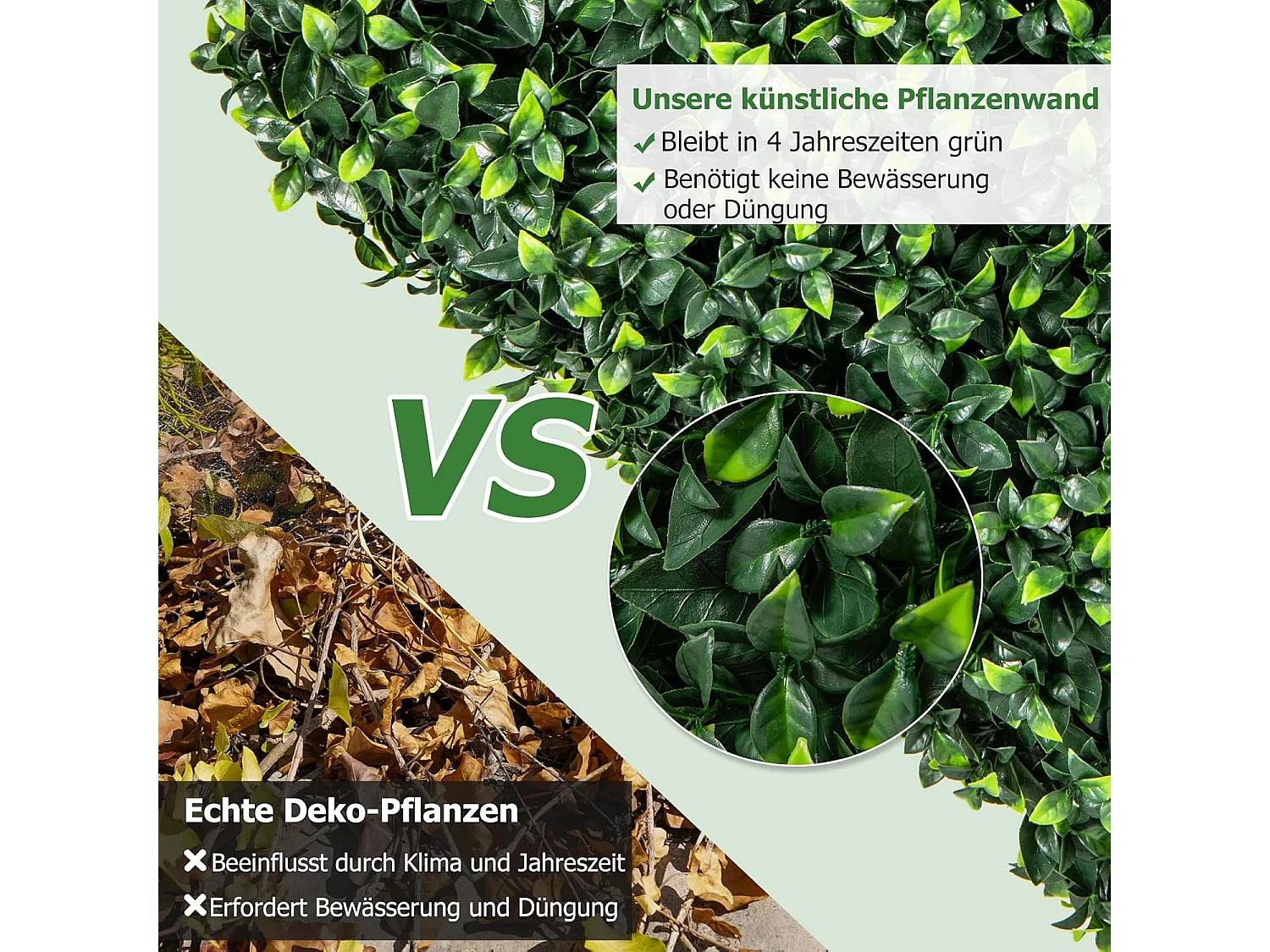Kunstplantenwand, staande kunstplanten, als ruimteverdeler en decoratie, met realistische PE-bladeren, 92 x 38 x 86 cm, ideaal voor binnen en buiten