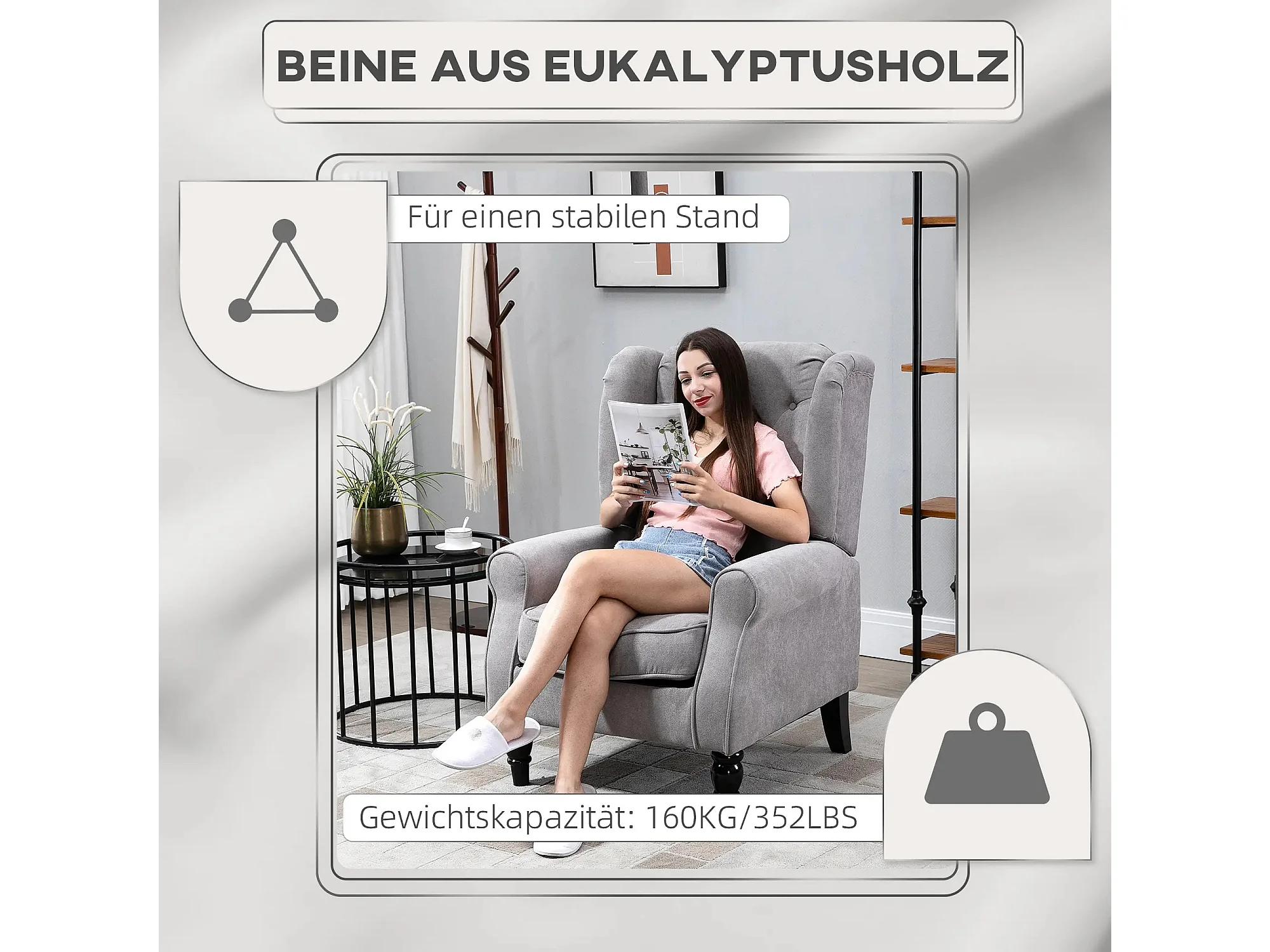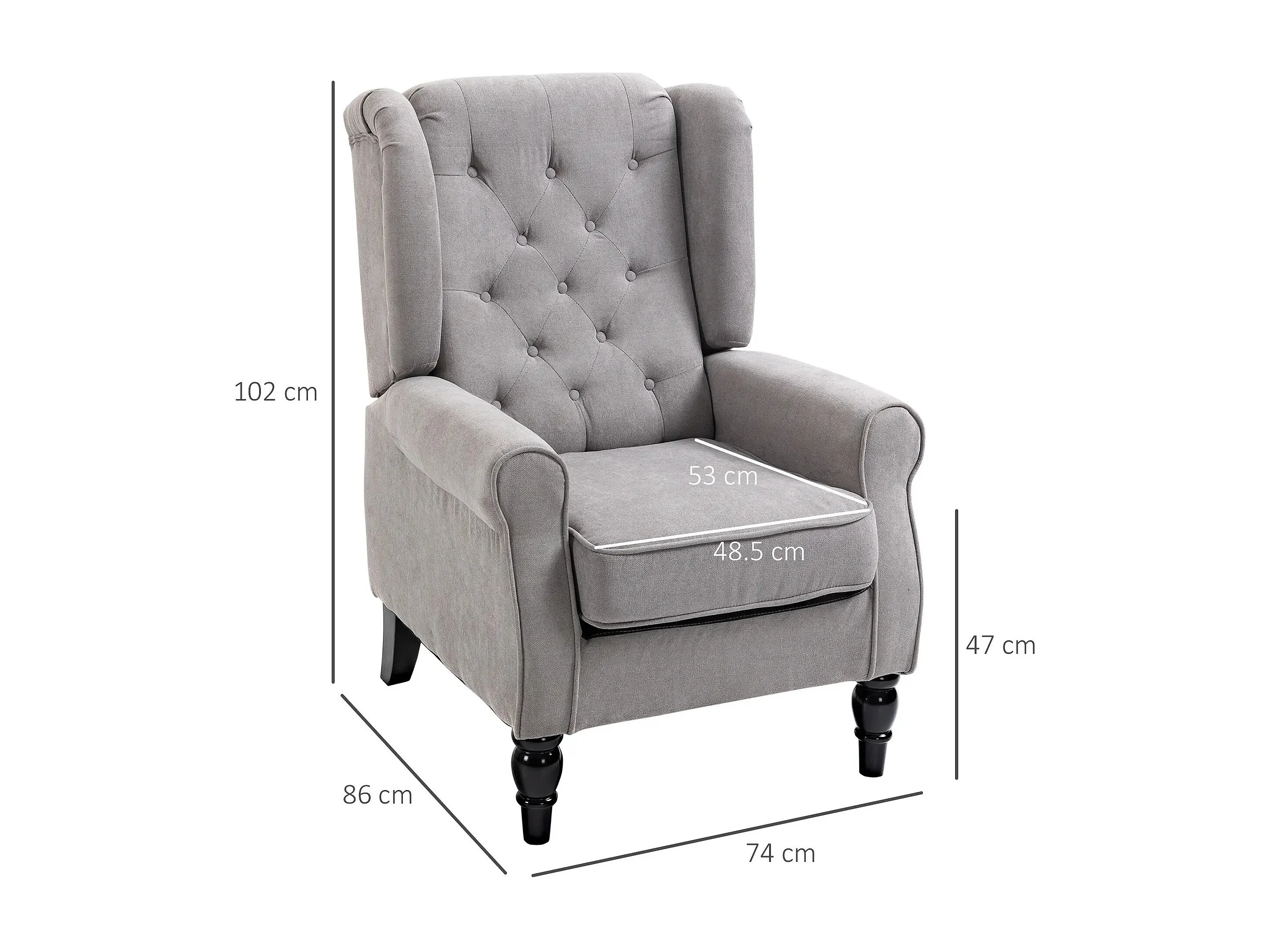 Kussenfauteuil met bekleding, houten poten, polyester, grijs (74x86x102cm)