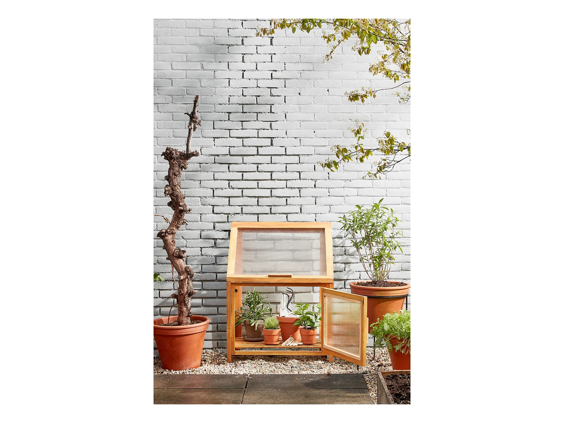 Kweekkas van mahoniehout en policarbonaat en metalen onderdelen - 60 x 42 x 77 - Bruin - CAMINIA