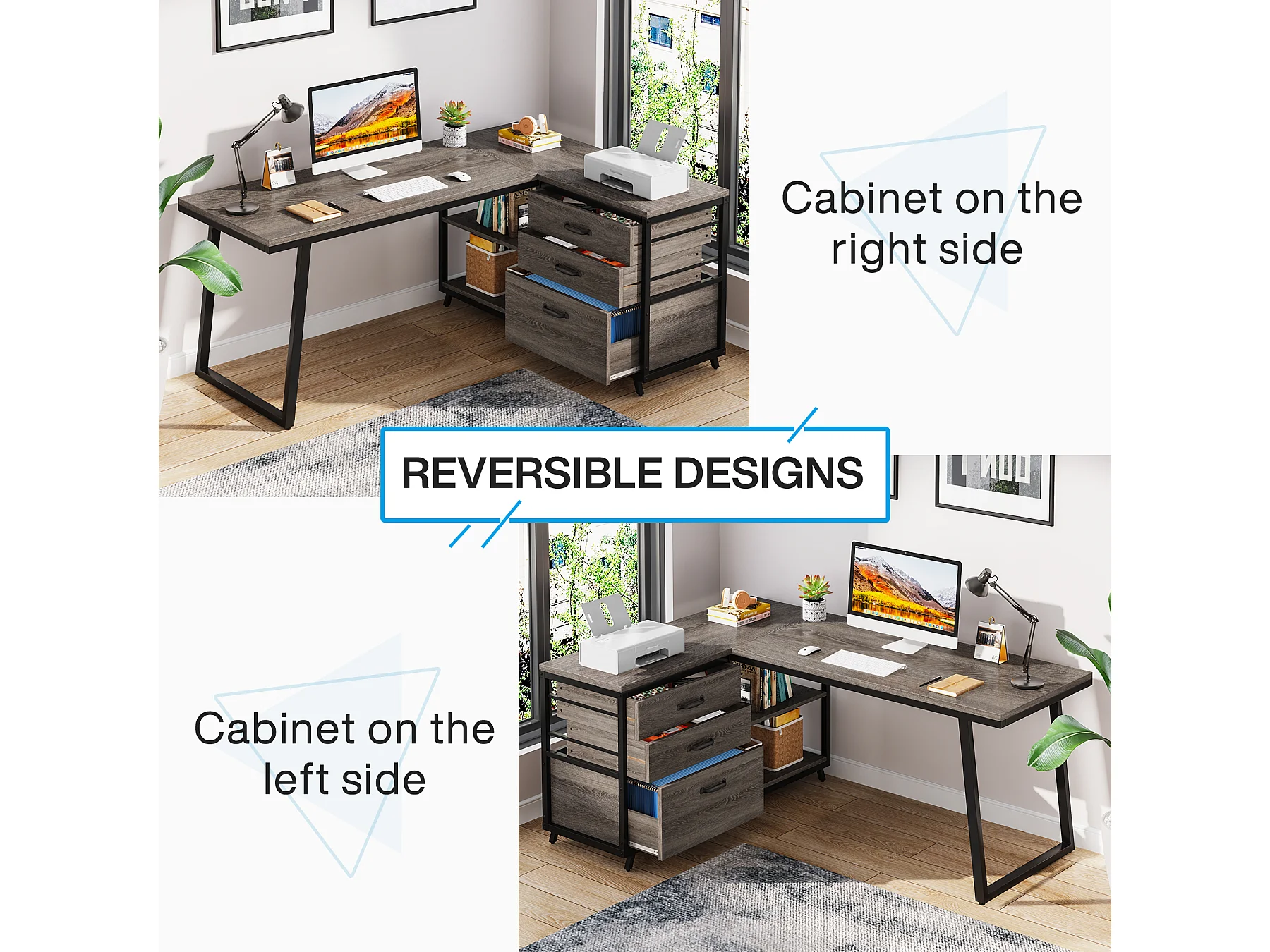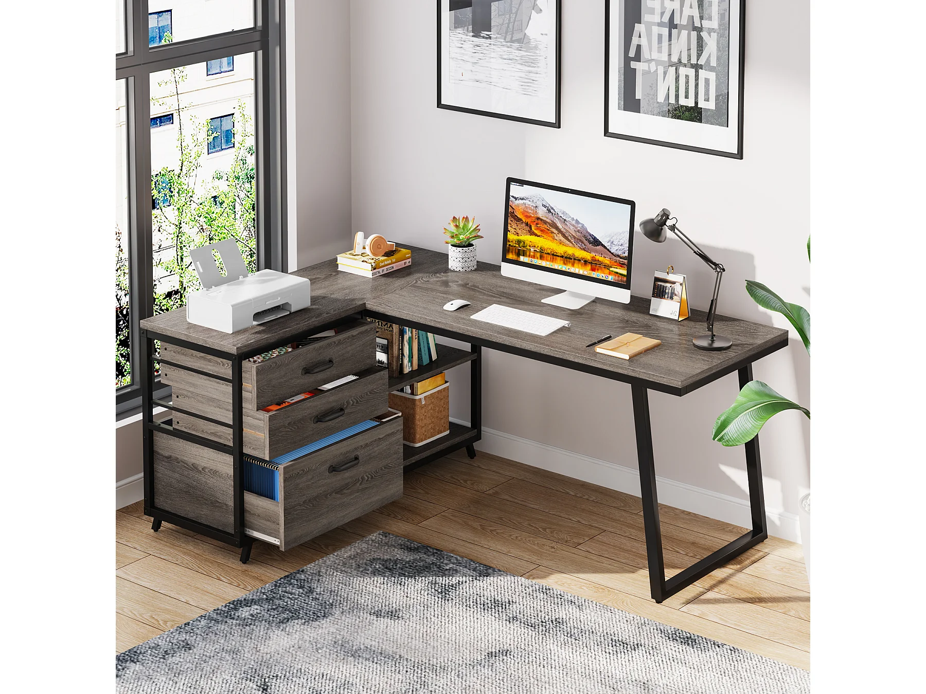 L-vormig bureau, omkeerbaar hoekbureau met 3 lades