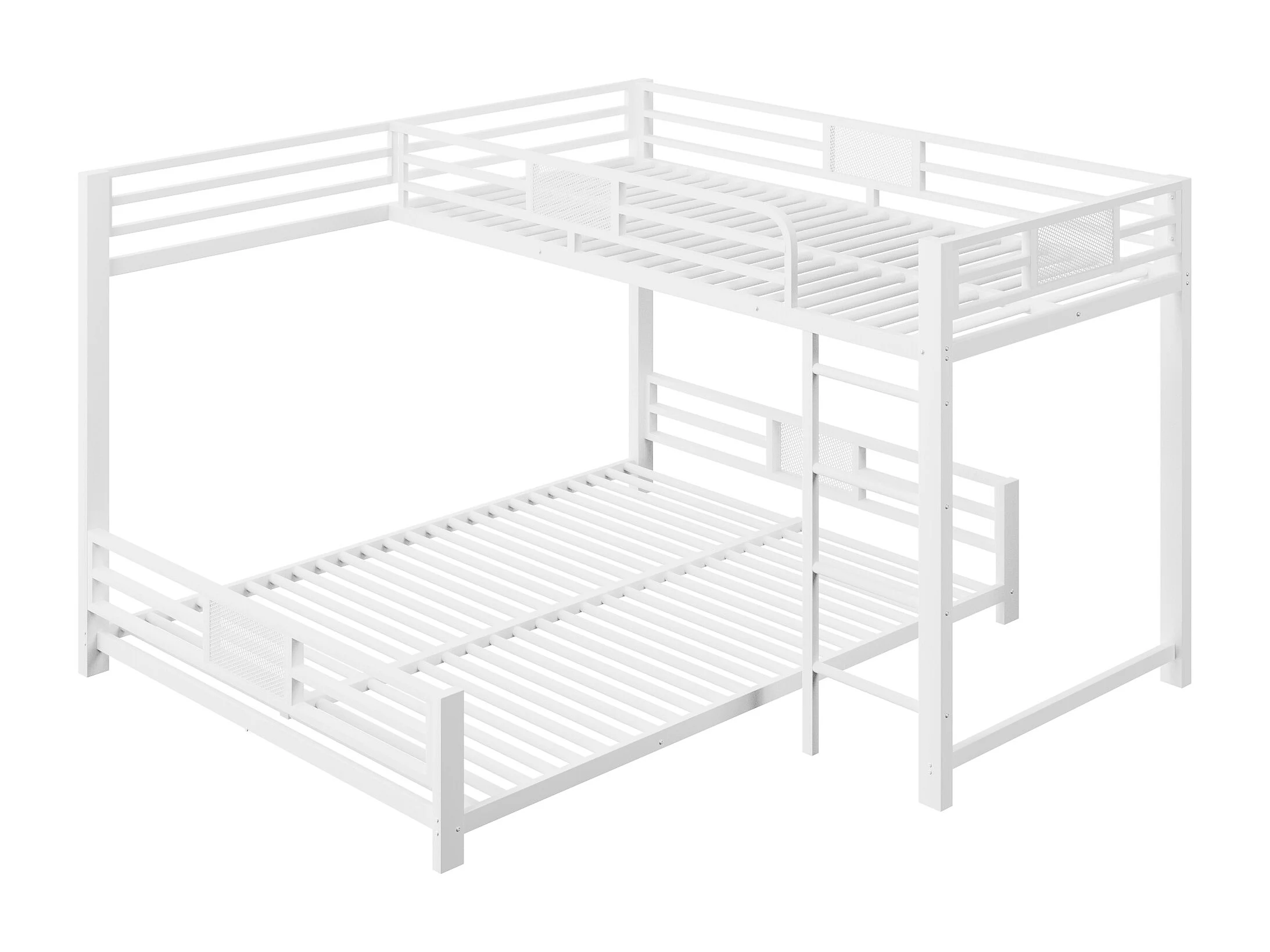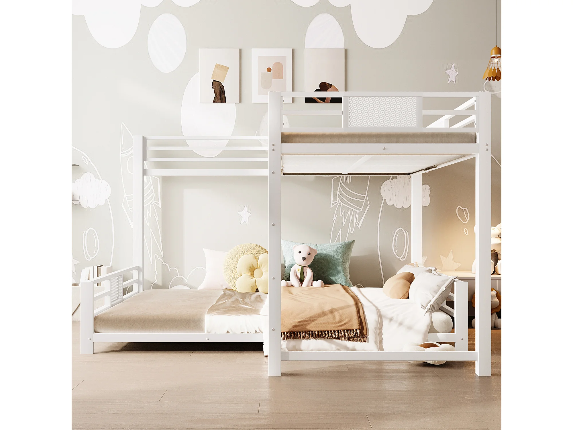 L-vormig stapelbed 90x200 en 140x200 cm met lattenbodem - Wit metaal