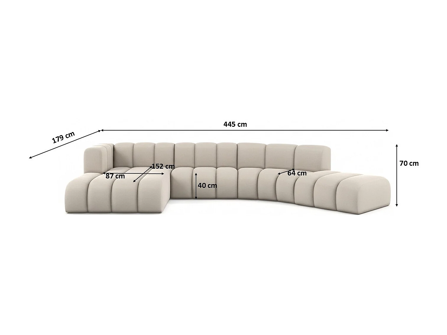 L-vormige hoekbank GRAND Round, stof Salvador, beige, links