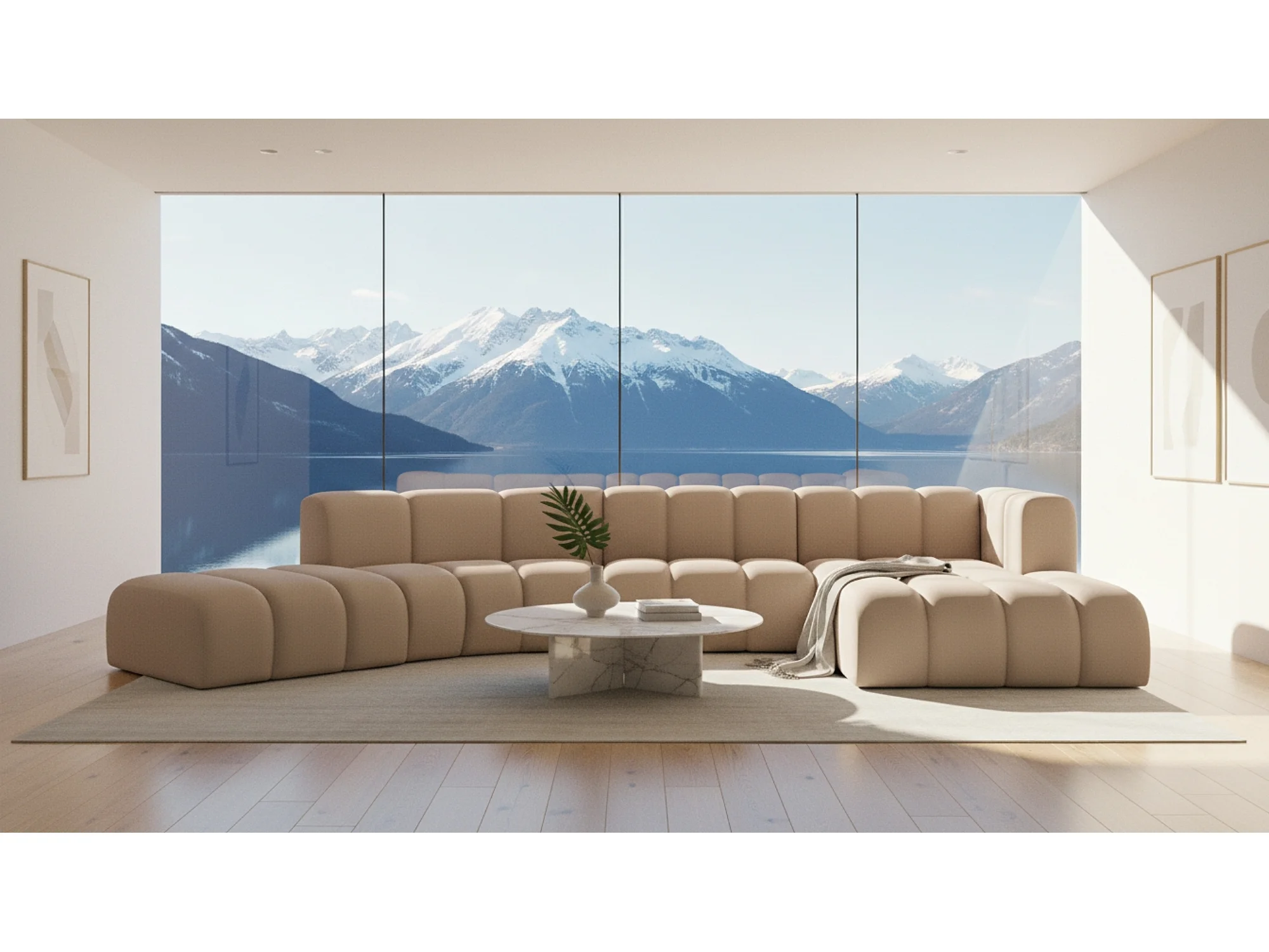 L-vormige hoekbank GRAND Round, stof Salvador, beige, rechts
