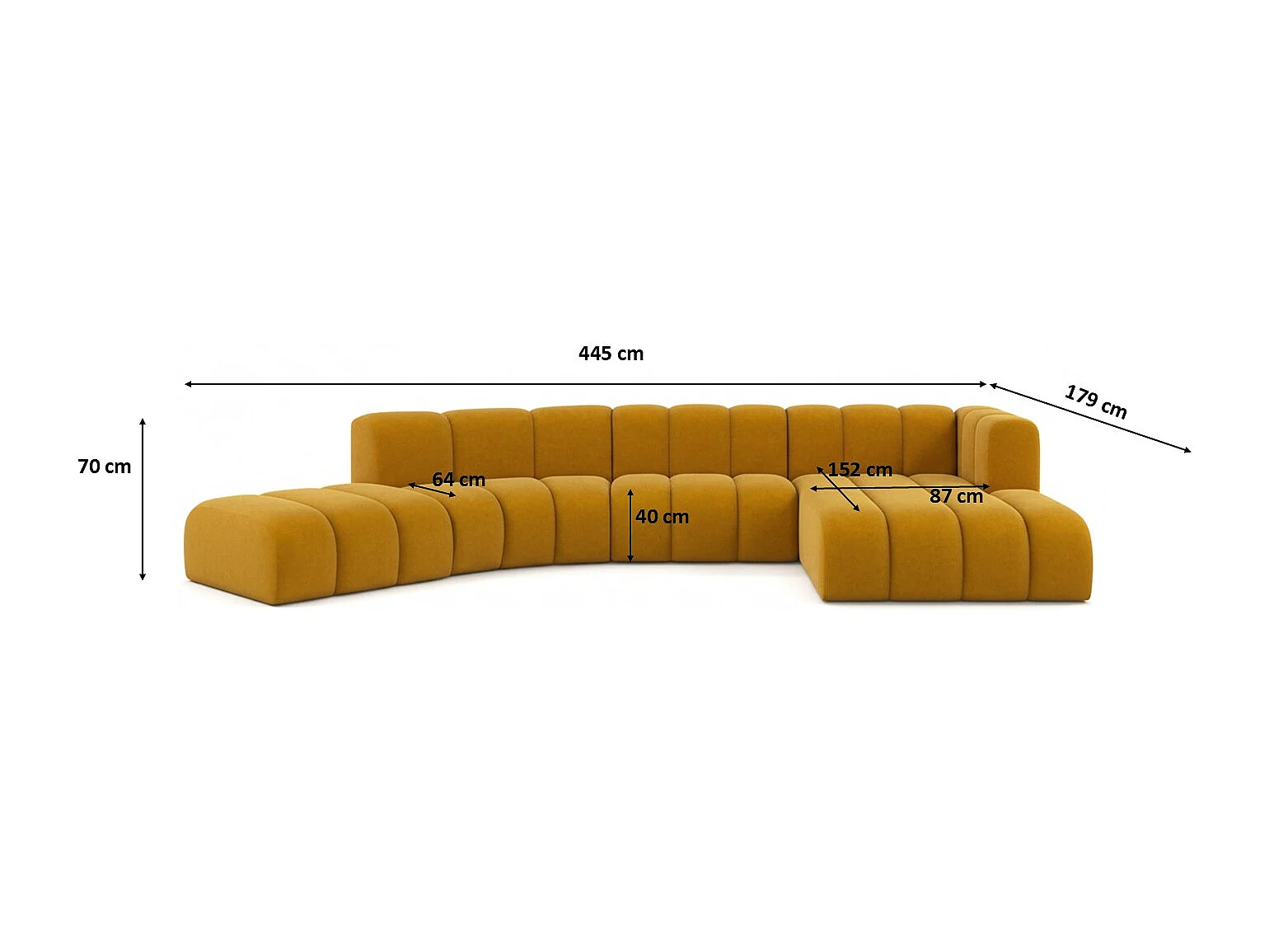 L-vormige hoekbank GRAND Round, stof Salvador, geel, rechts
