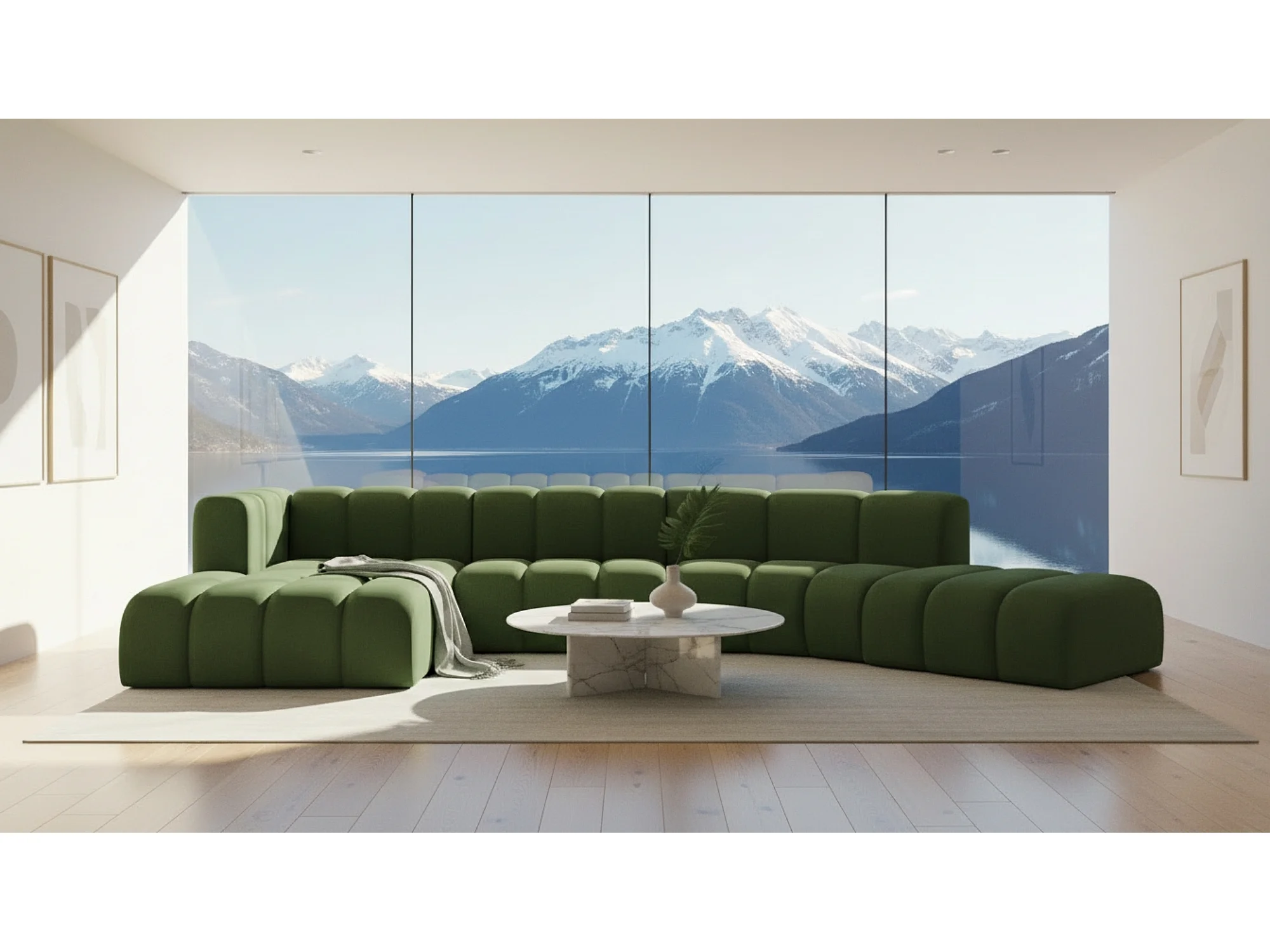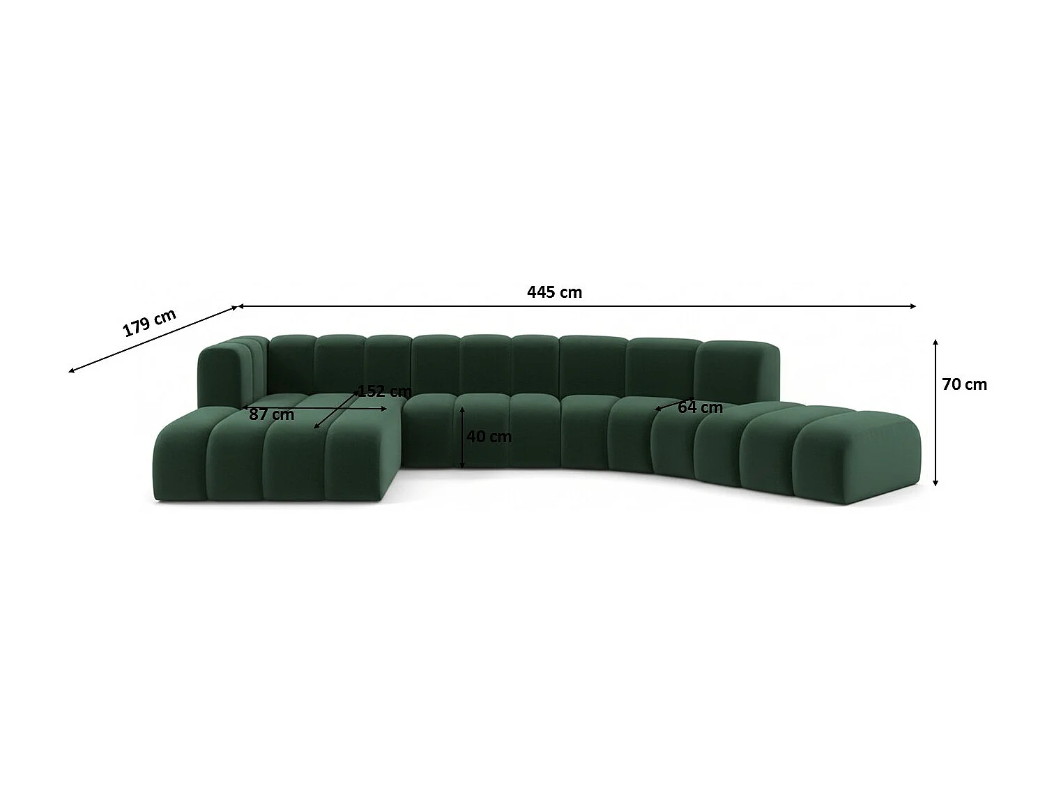 L-vormige hoekbank GRAND Round, stof Salvador, groen, links