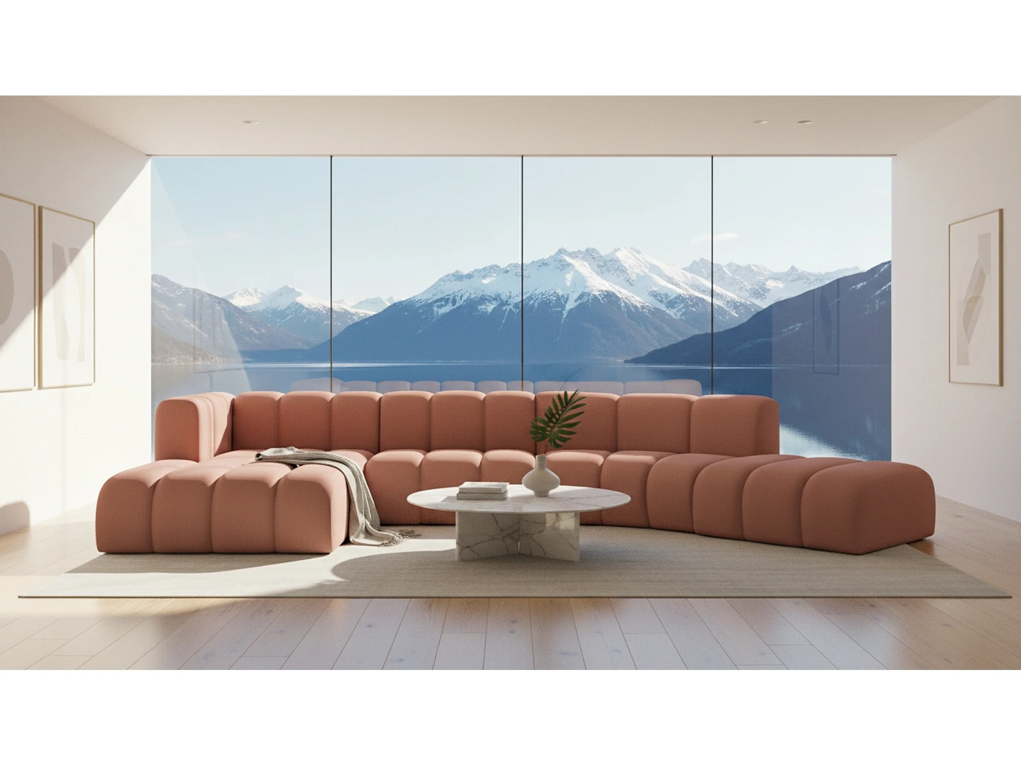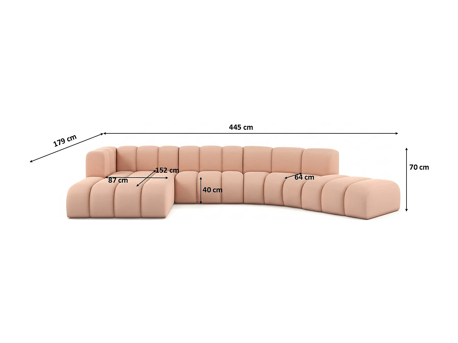 L-vormige hoekbank GRAND Round, stof Salvador, roze, links