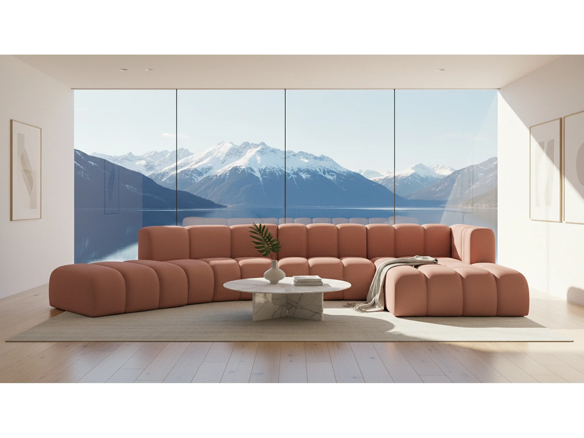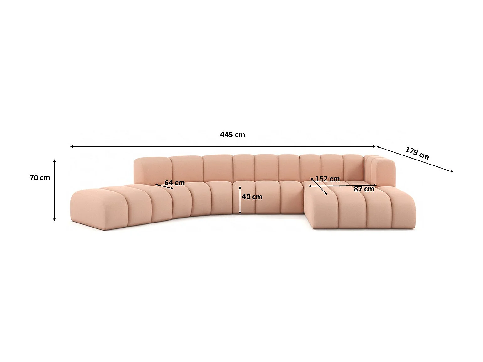 L-vormige hoekbank GRAND Round, stof Salvador, roze, rechts