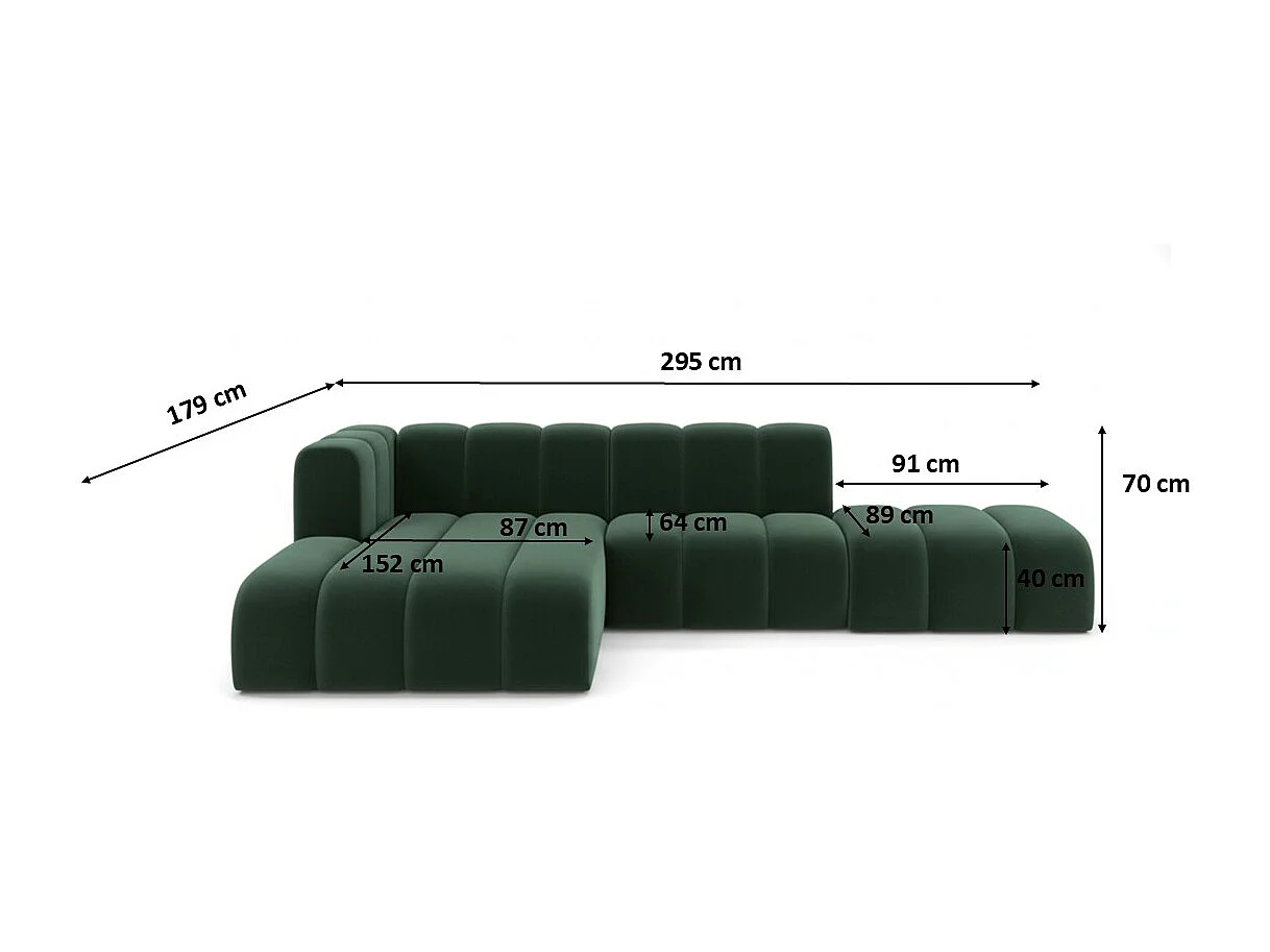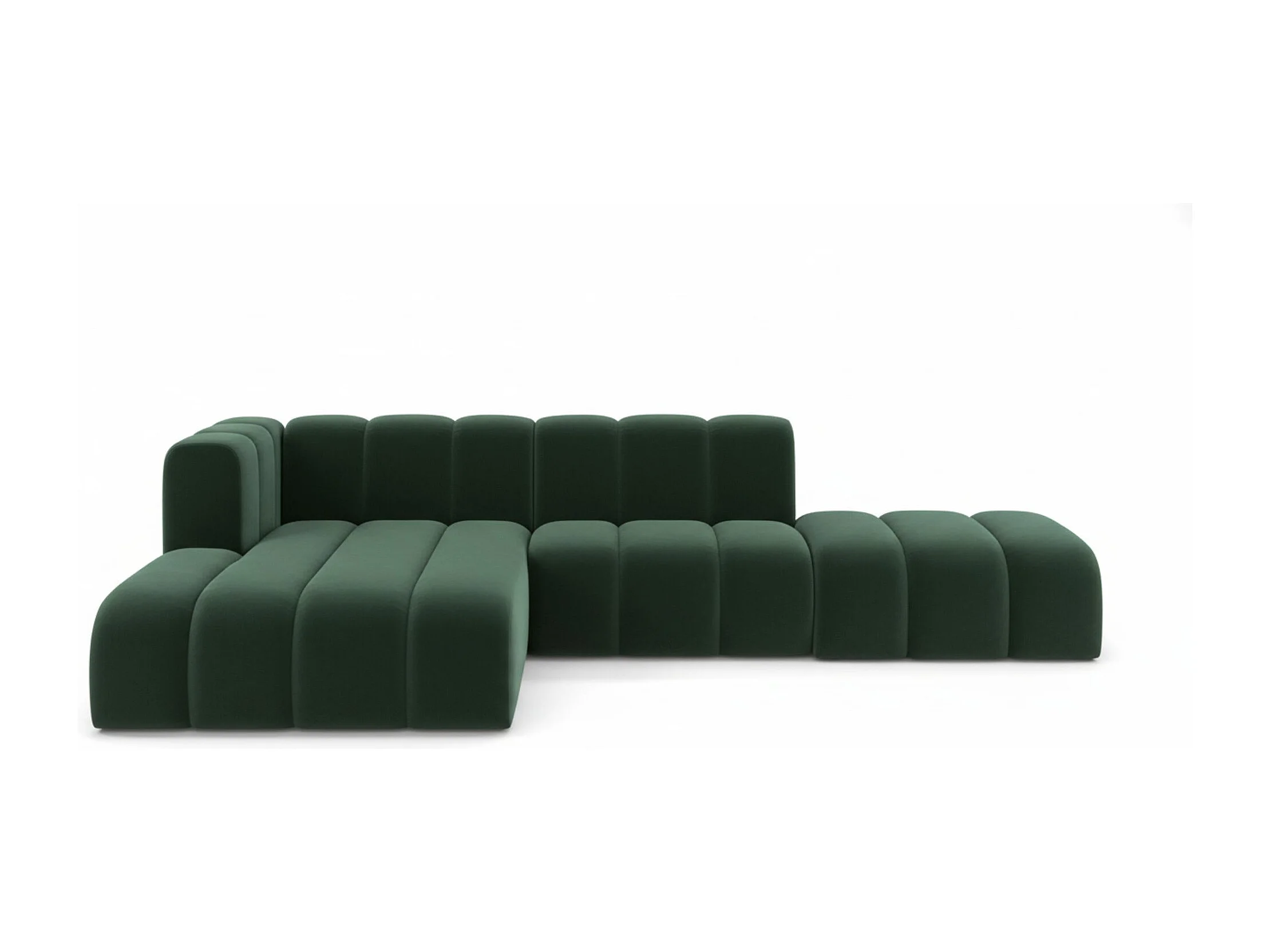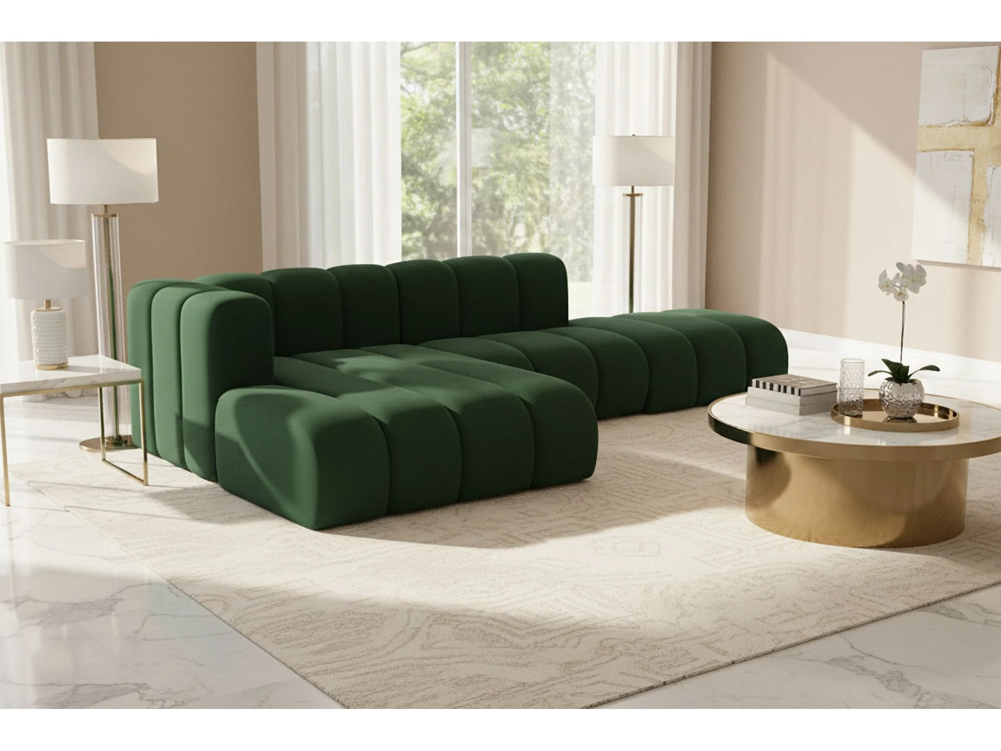L-vormige hoekbank met voetenbank, Grand Mini, Salvador-stof, groen, links