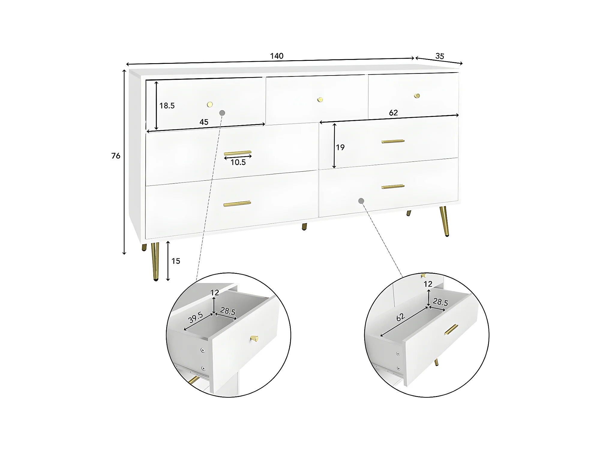 Laag dressoir - 7 lades - spaanplaat - Wit