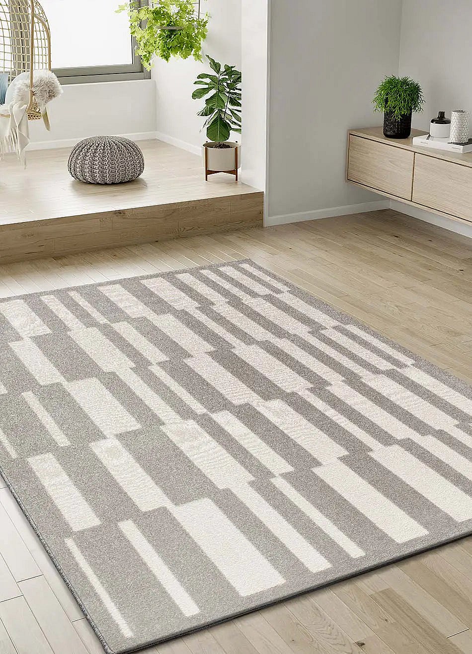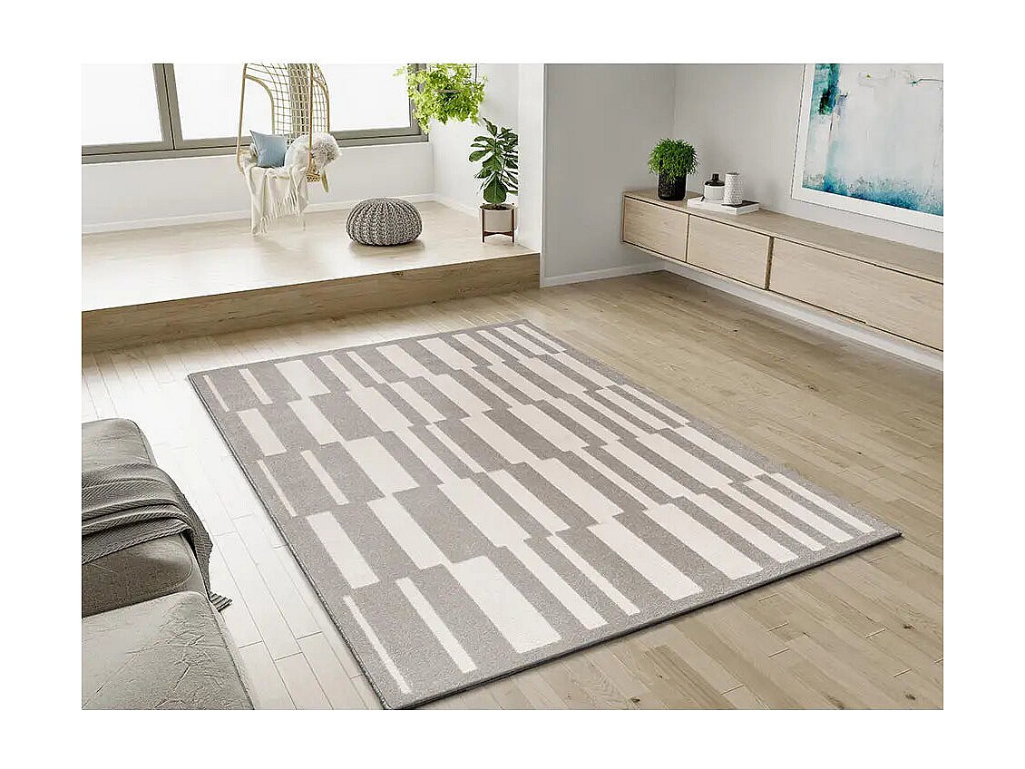 Geometrisch tapijt - 160 x 230 cm - Wit en grijs - NIMIRIA