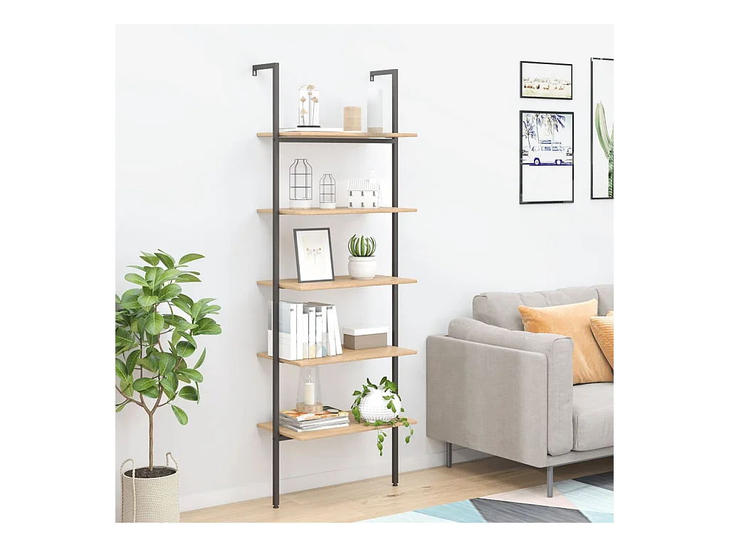 Ladderrek met 5 schappen 64x35x185 cm lichtbruin en zwart