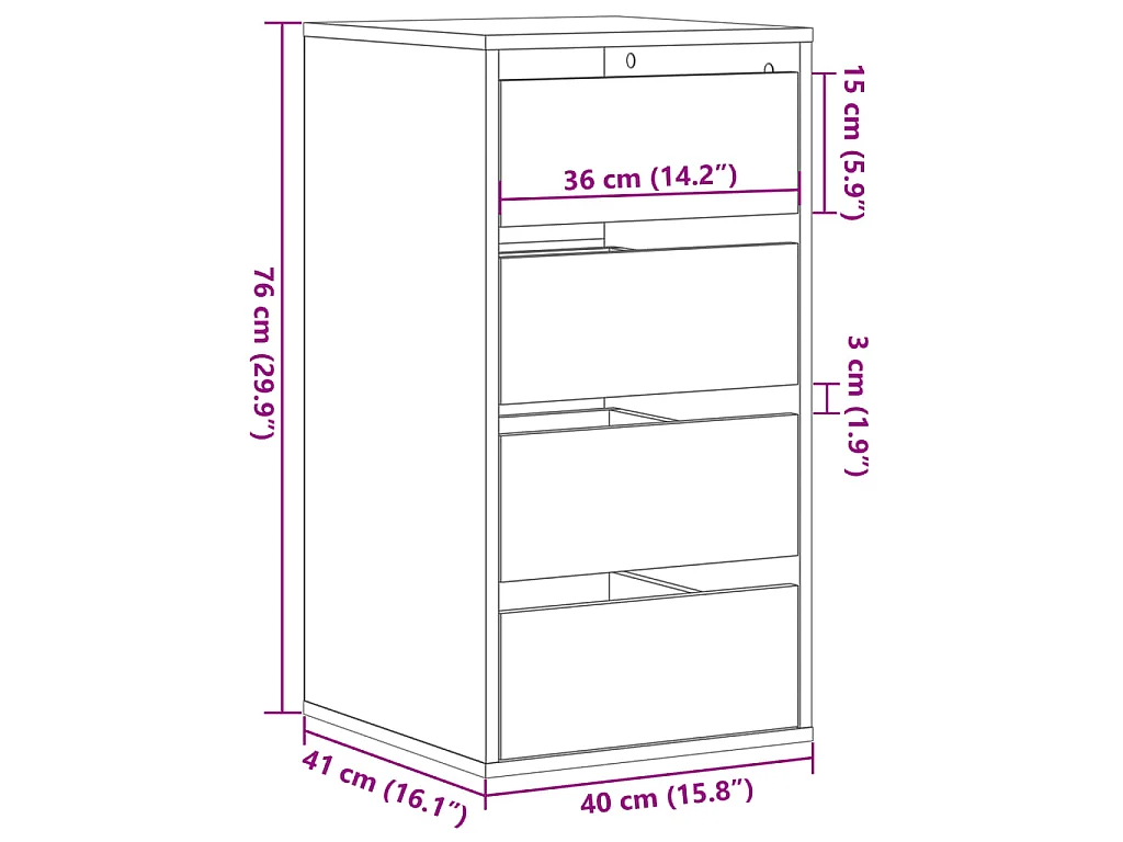 Ladekast 40x41x76 cm bewerkt hout betongrijs