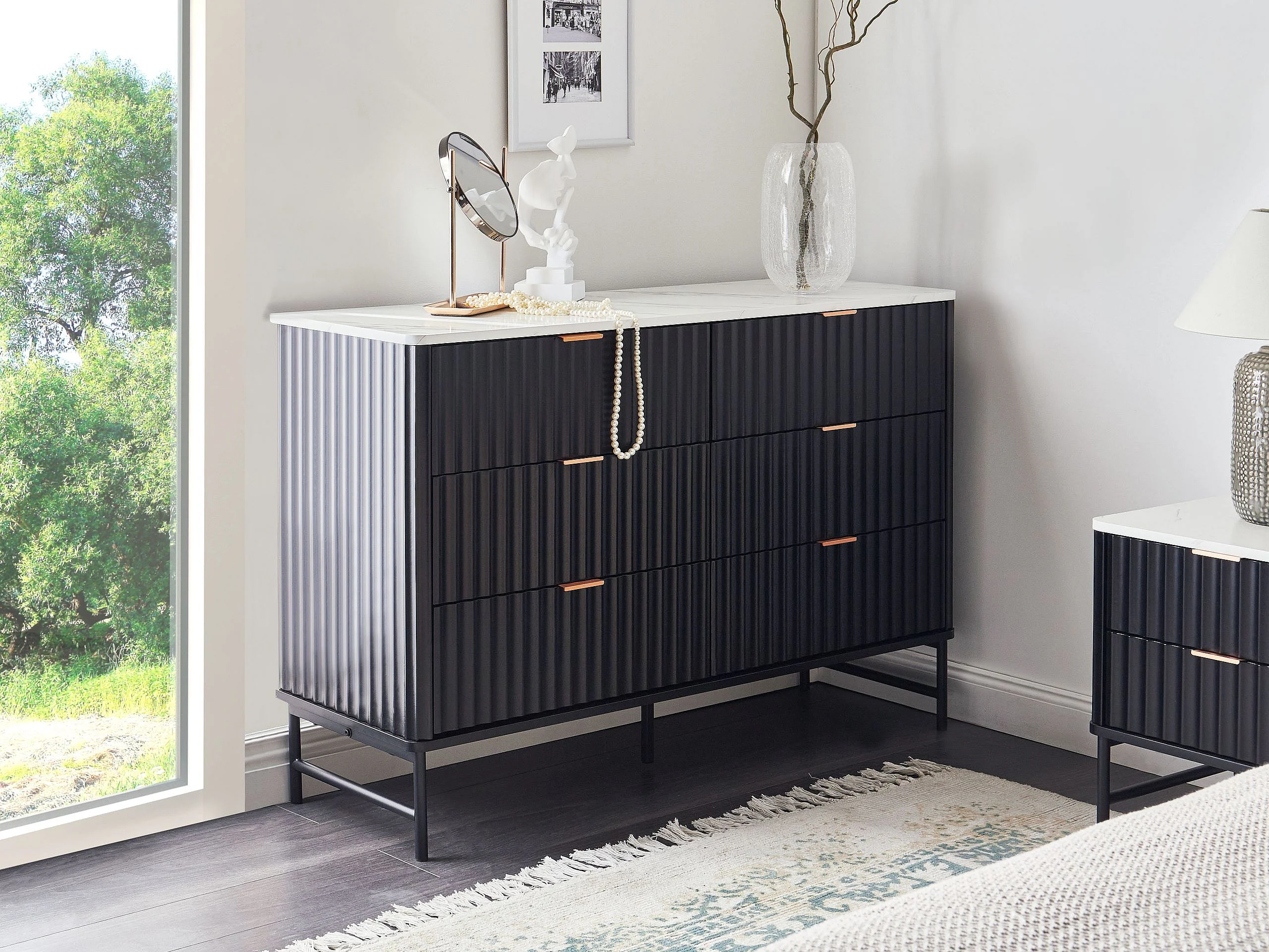Ladekast 6 lades GLASTONBURY Marmer/zwart