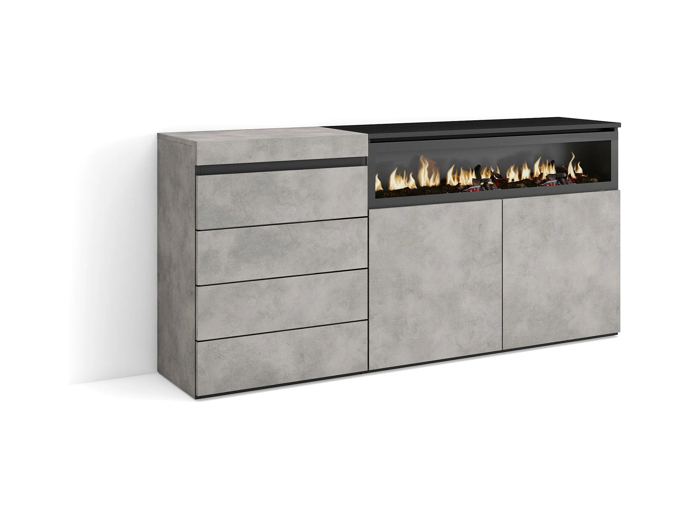 Ladekast, Commode, 214x35x75cm, Voor slaapkamer, kamer, Elektrische haard, Cement