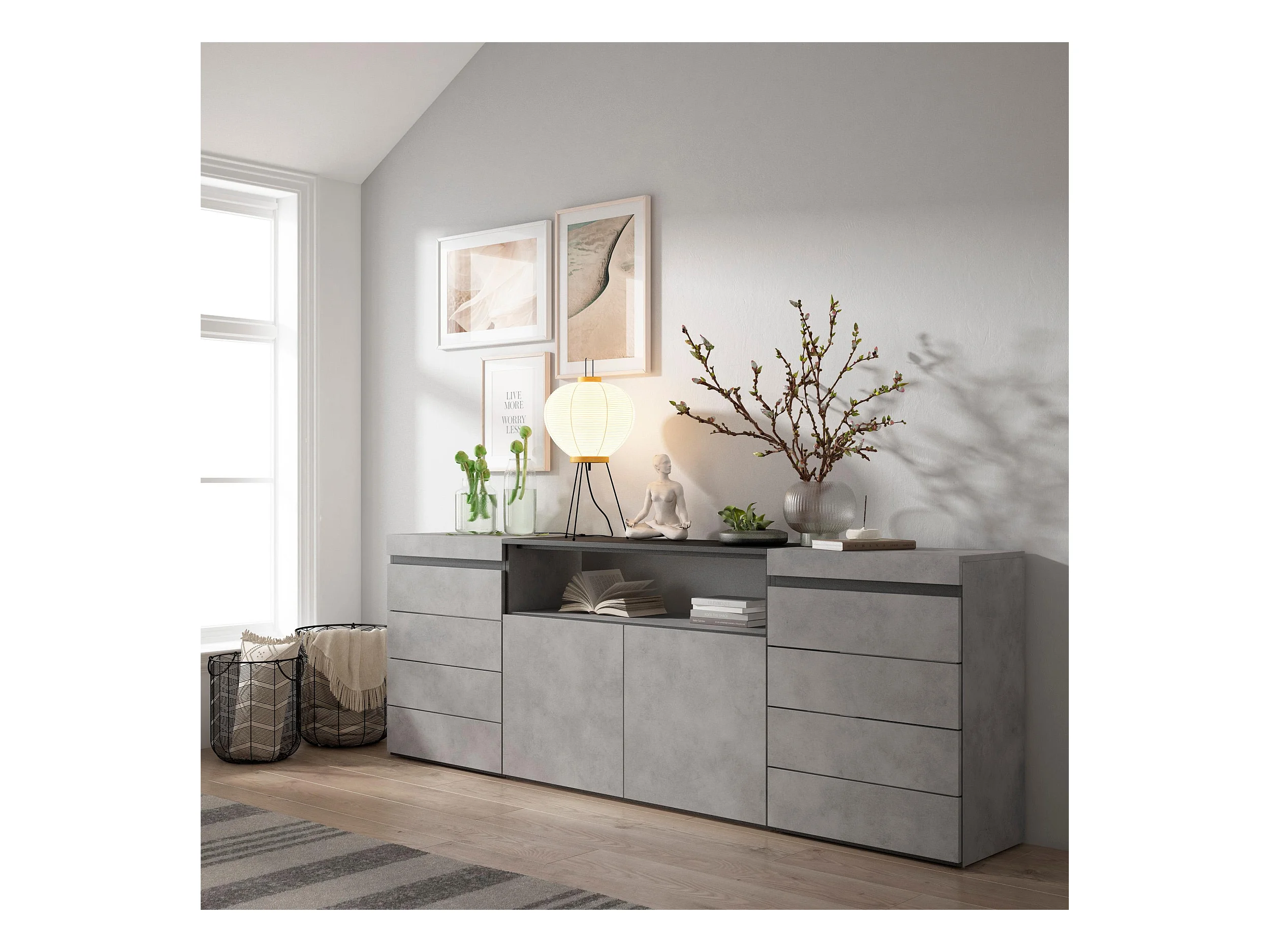 Ladekast, Commode, 214x35x75cm, Voor slaapkamer, kamer, Met opbergruimte, Cement