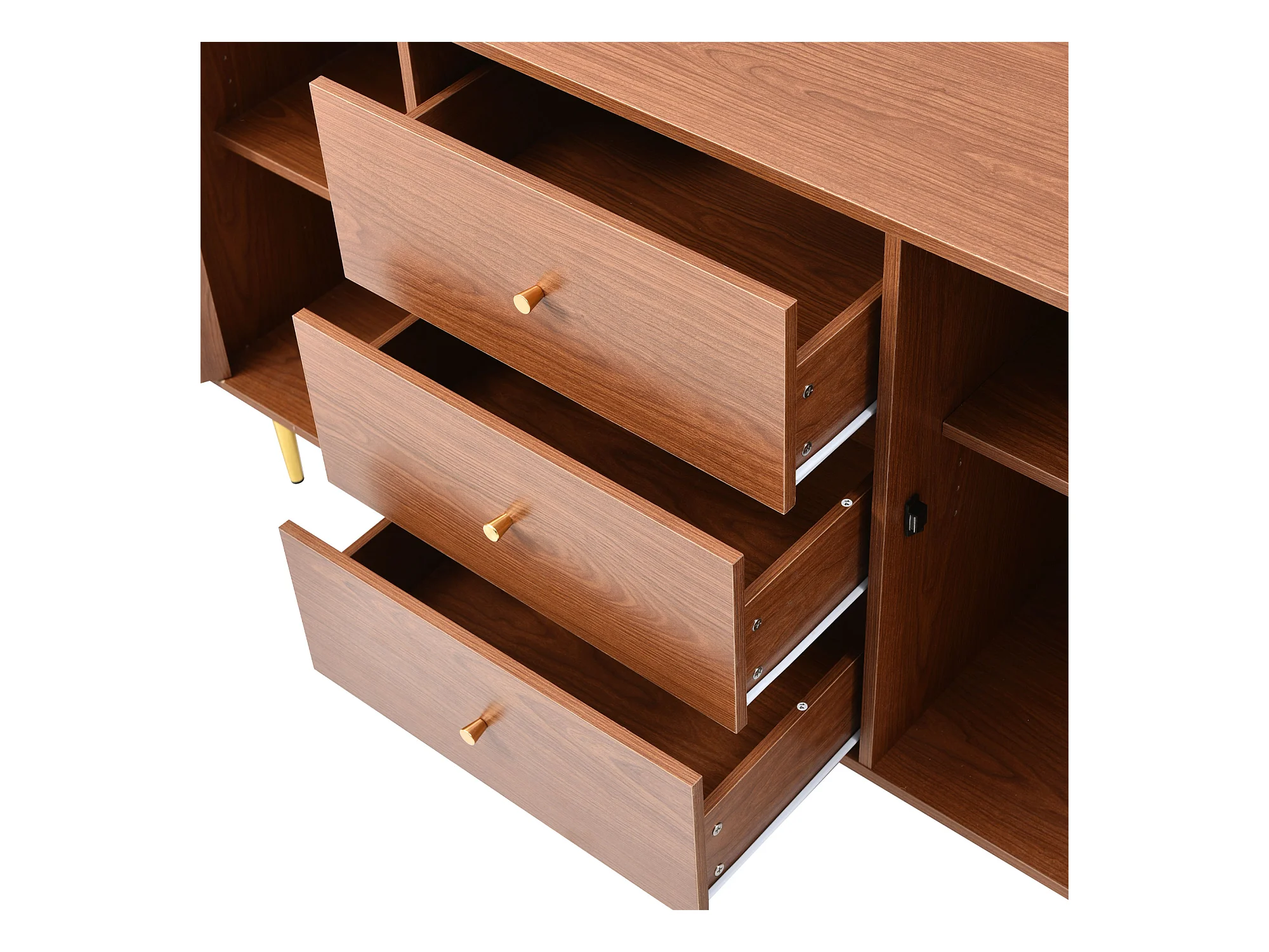 Ladekast met 6 laden, dressoir, spaanplaat + metaal + MDF, walnoot -H90/L120/D40 cm