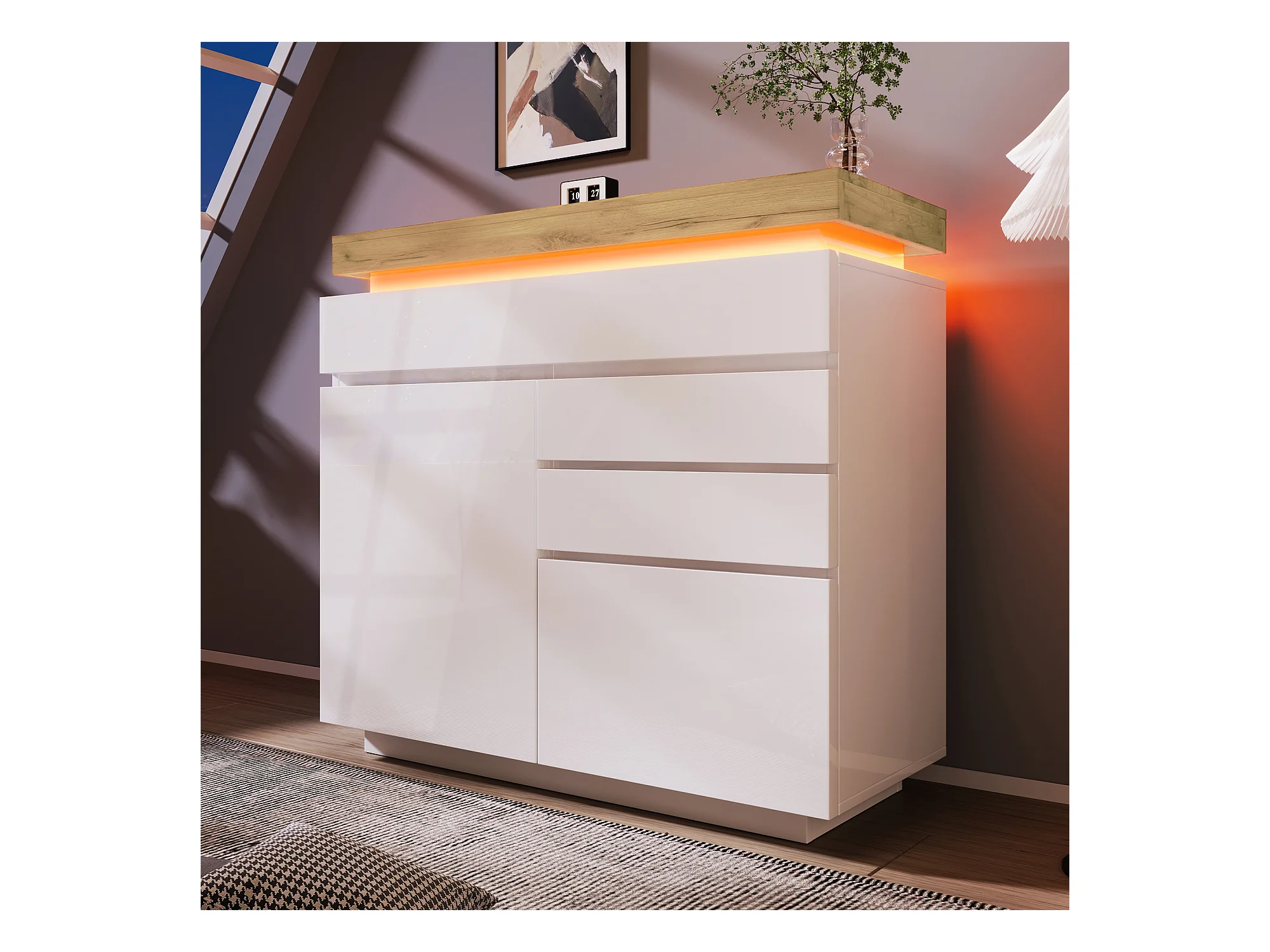 Ladekast met 2 deuren en 3 lades - 110 x 39 x 115 cm - LED's - Spaanplaat - voor woonkamer, slaapkamer - Wit