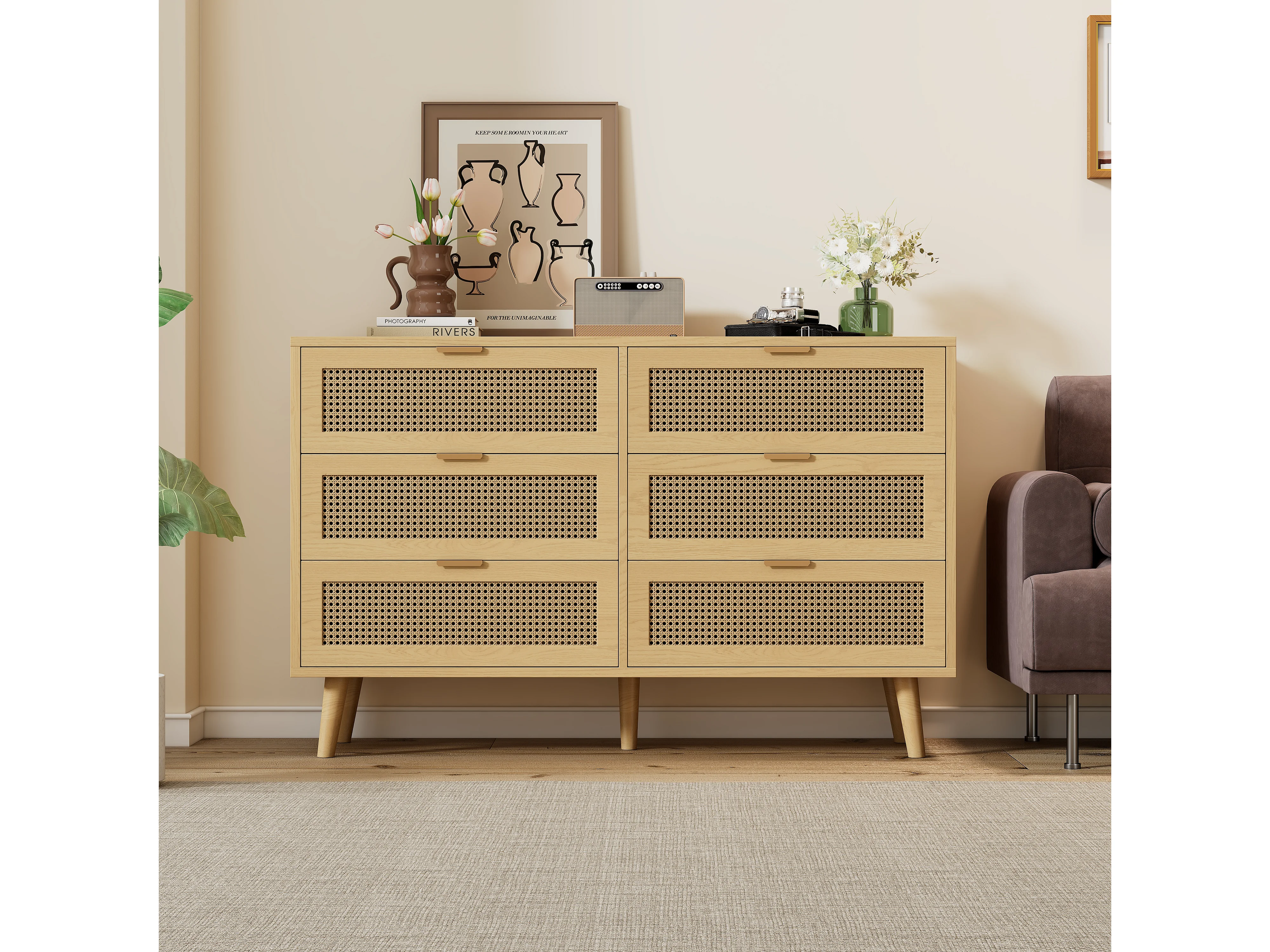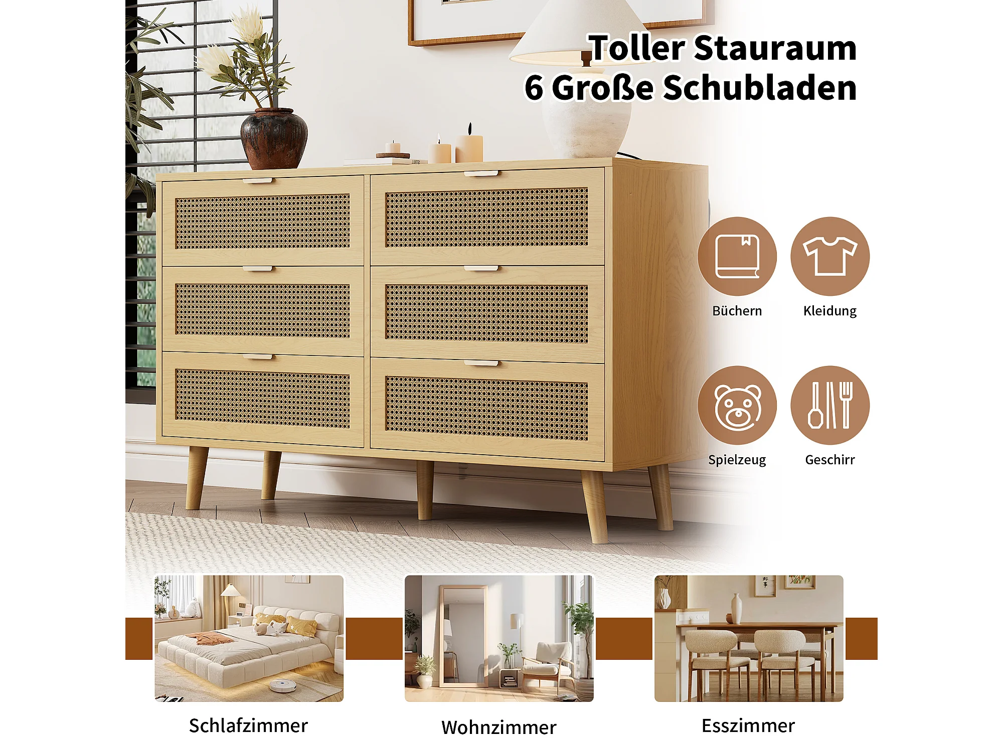 Ladekast met 6 laden, houten dressoir met laden, ladekast met metalen handgrepen, voor slaapkamers, woonkamers