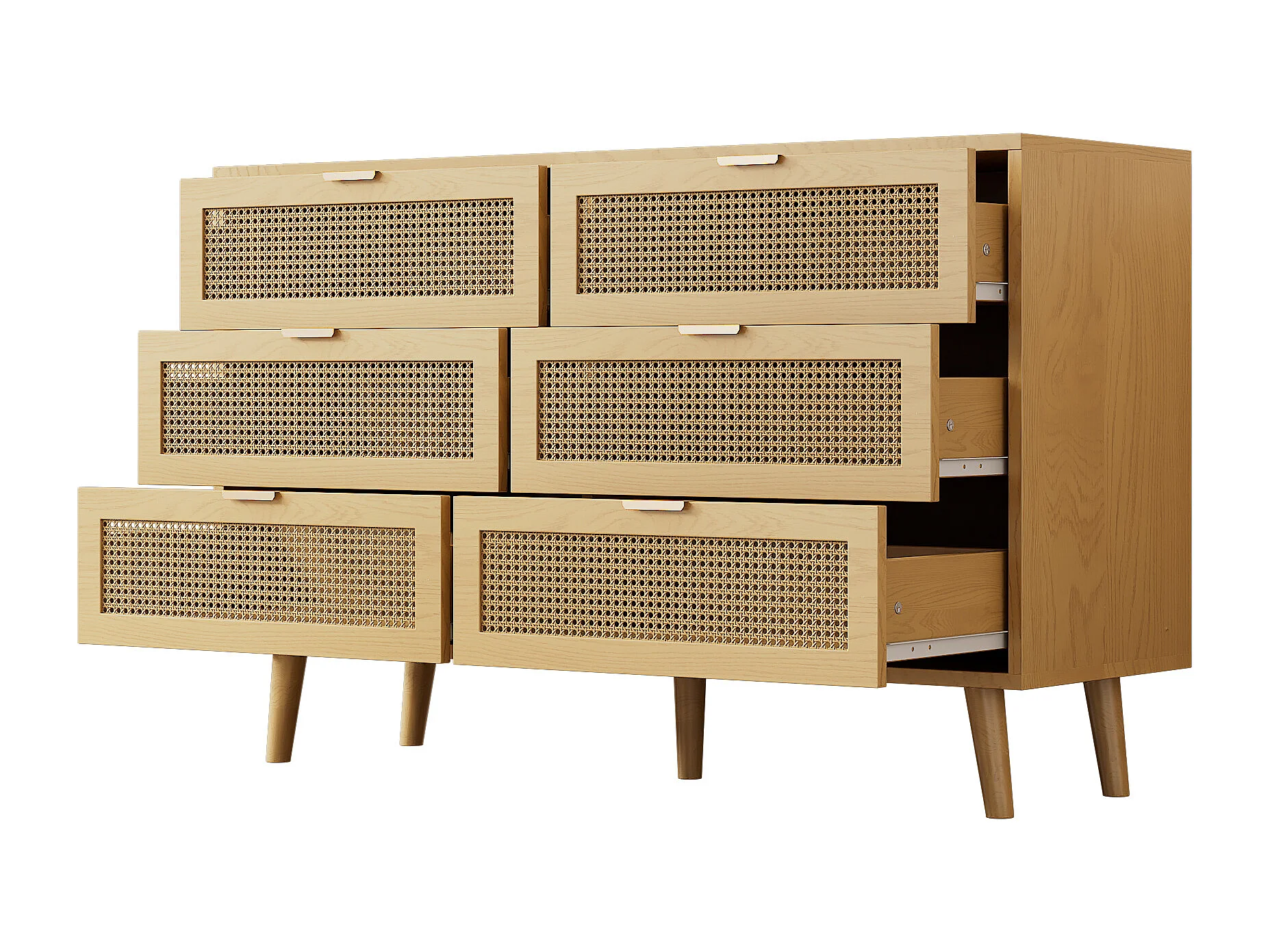 Ladekast met 3 lades en 1 klepvak - in hout en rotan - Naturel
