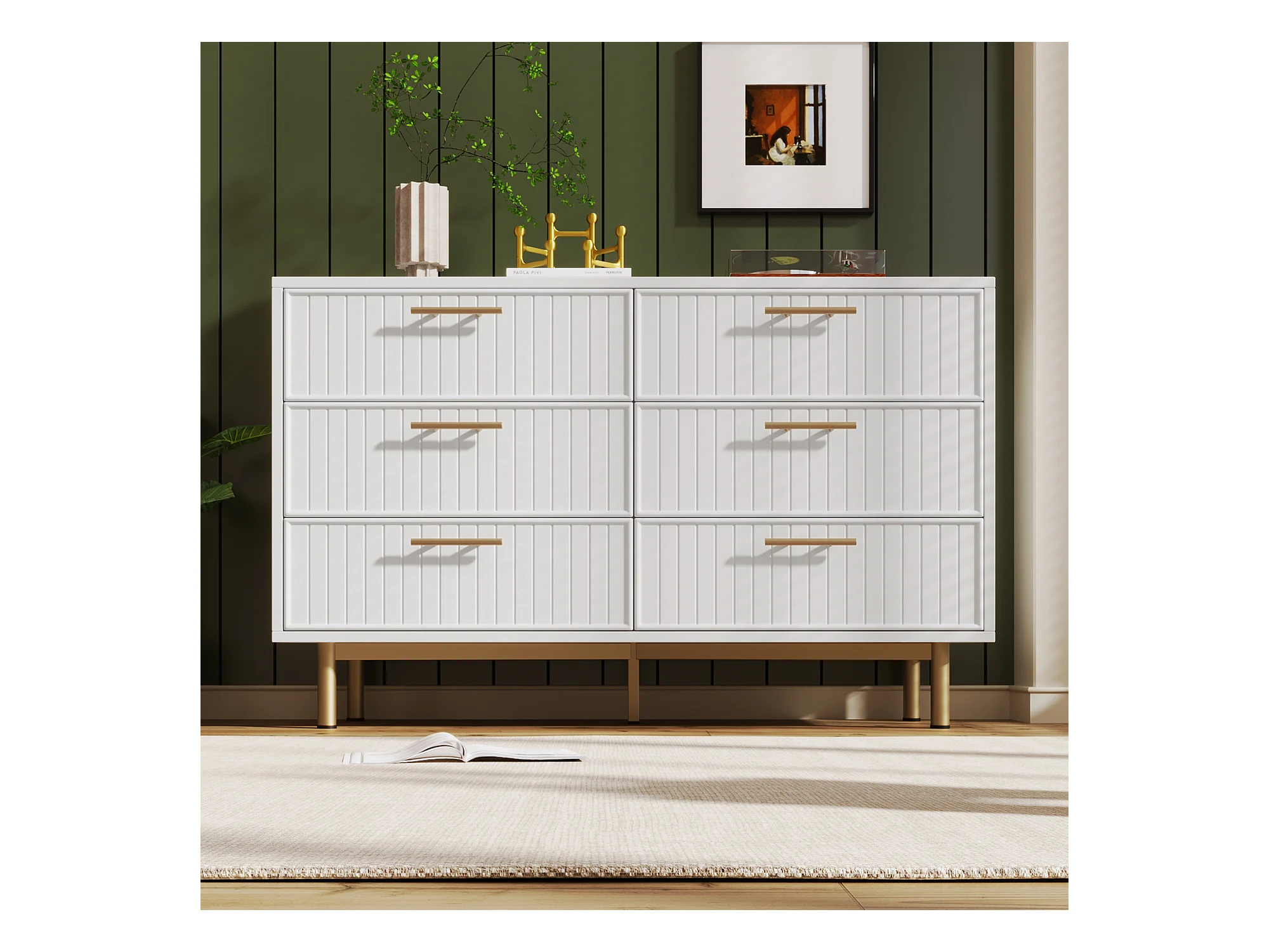 Witte ladekast met driedimensionaal design, MDF, 6 lades, verstelbare poten (120x40x75 cm)
