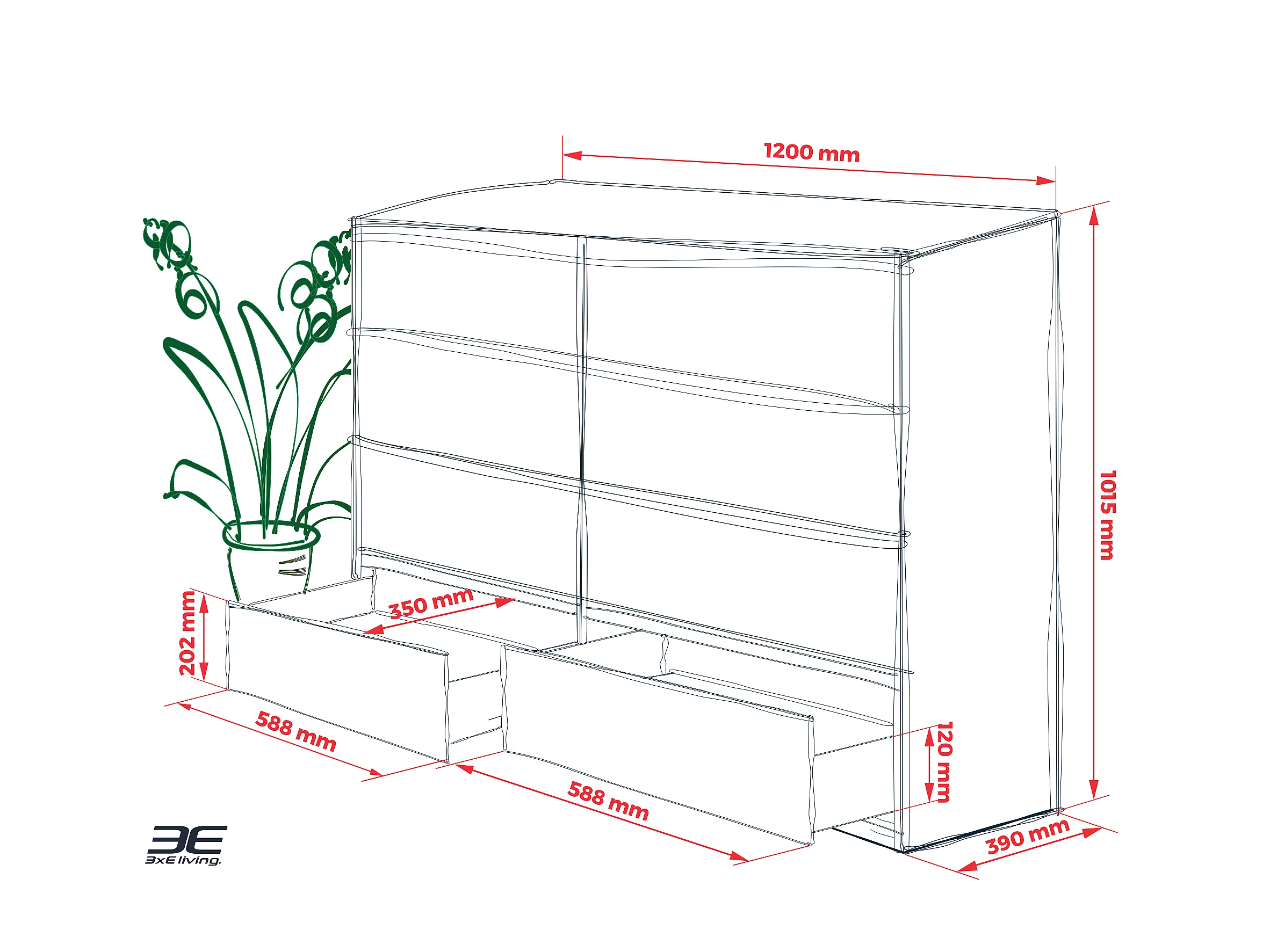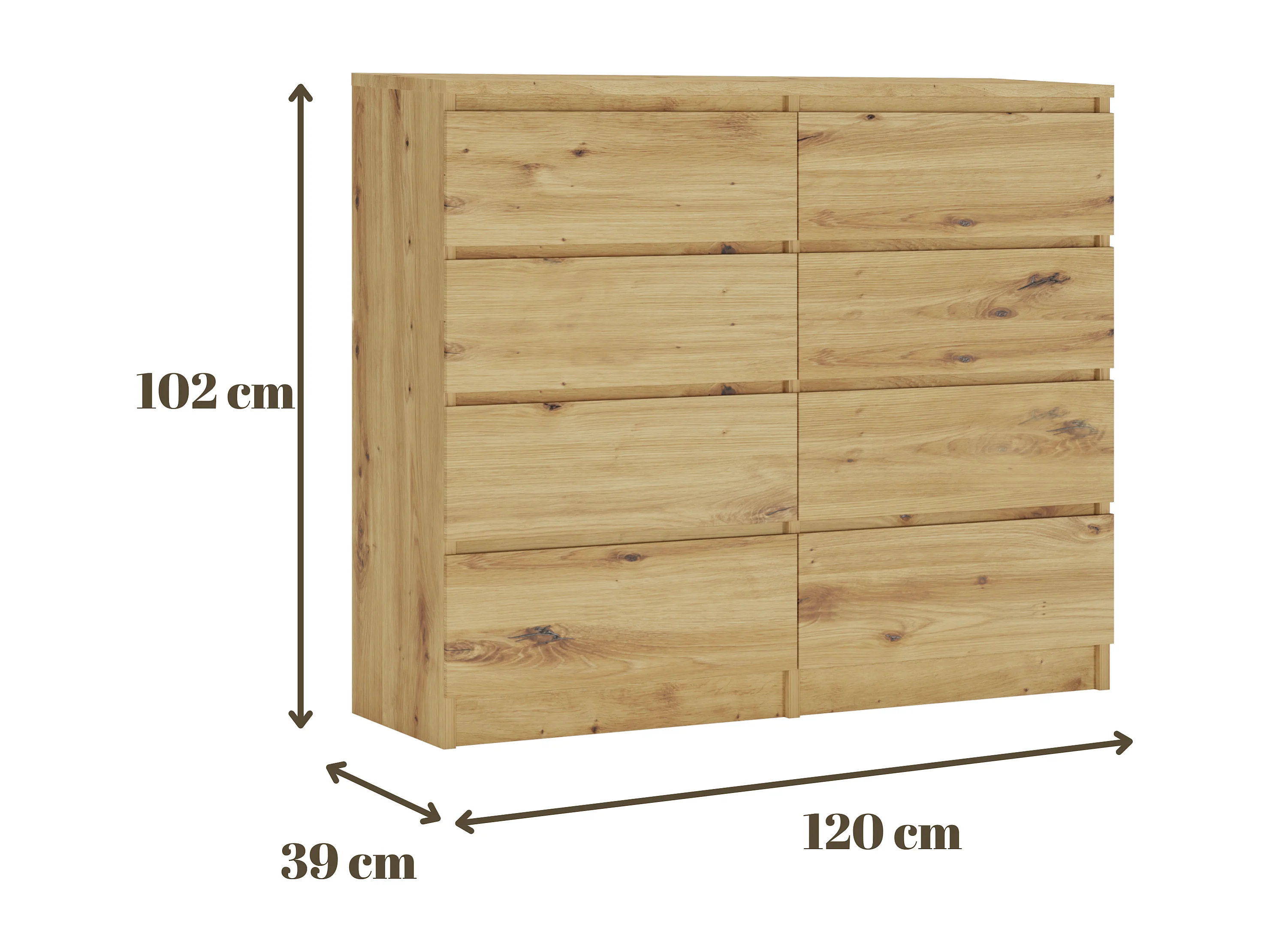 Ladekast met 8 laden: Artisan Oak, 120 x 101 x 39 cm