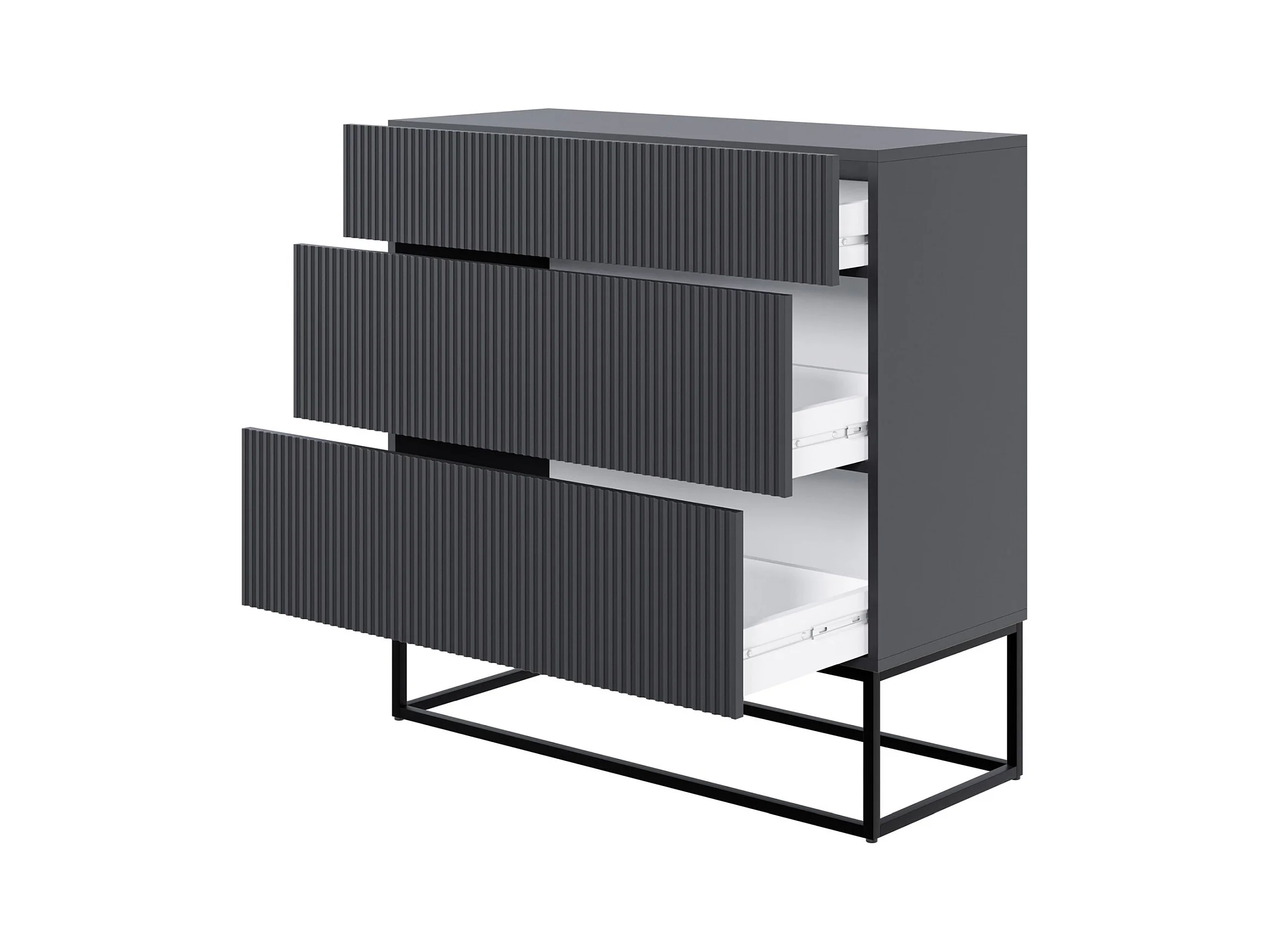 Ladekast met drie laden - 90 cm - zwart met zwarte poten - VELDIO
