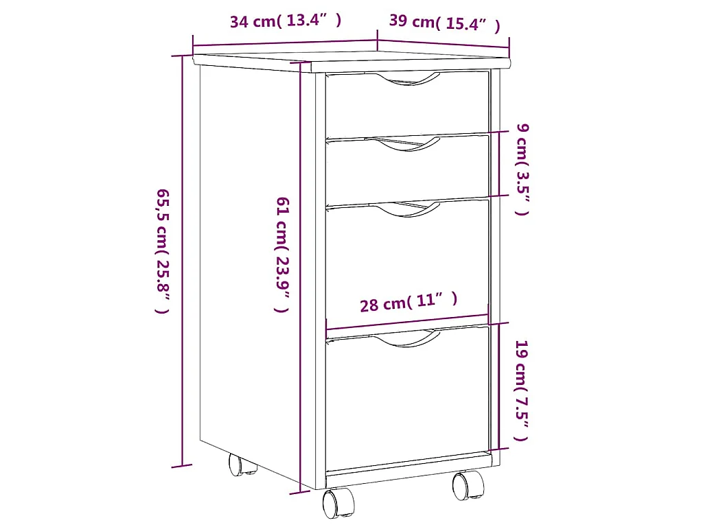 Ladekast MOSS verrijdbaar massief grenenhout honingbruin