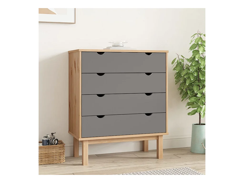 Ladekast OTTA 76,5x39,5x90 cm massief grenenhout bruin en grijs