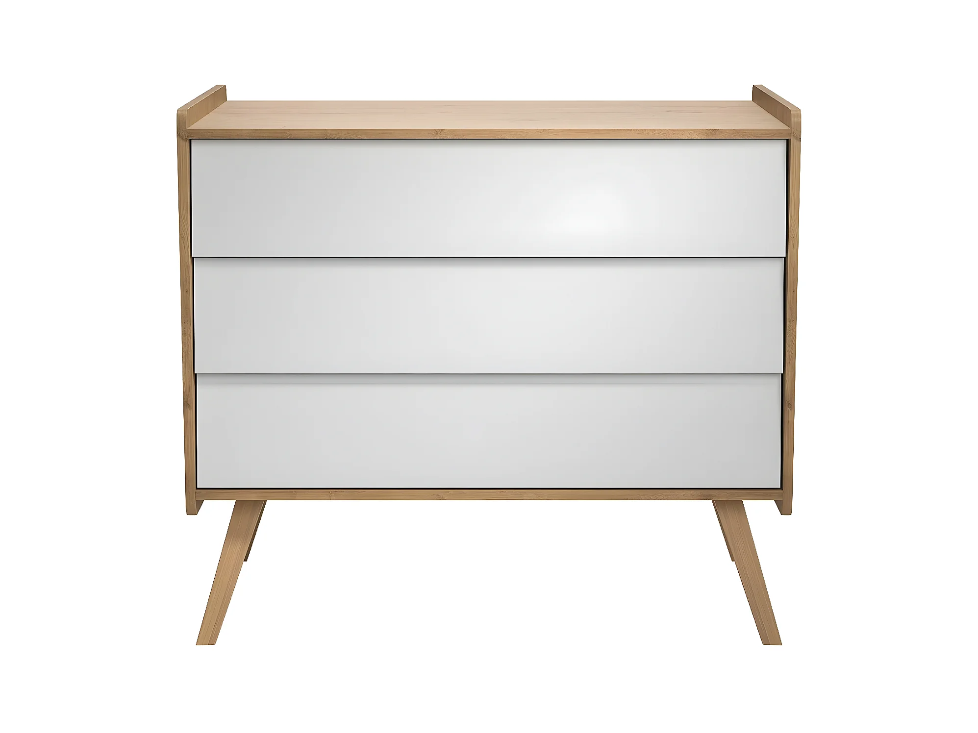 Bridgeport ladekast, Moderne ladekast met 3 laden, Lage ladekast voor de slaapkamer, Ladekast, 77x38h80 cm, Wit
