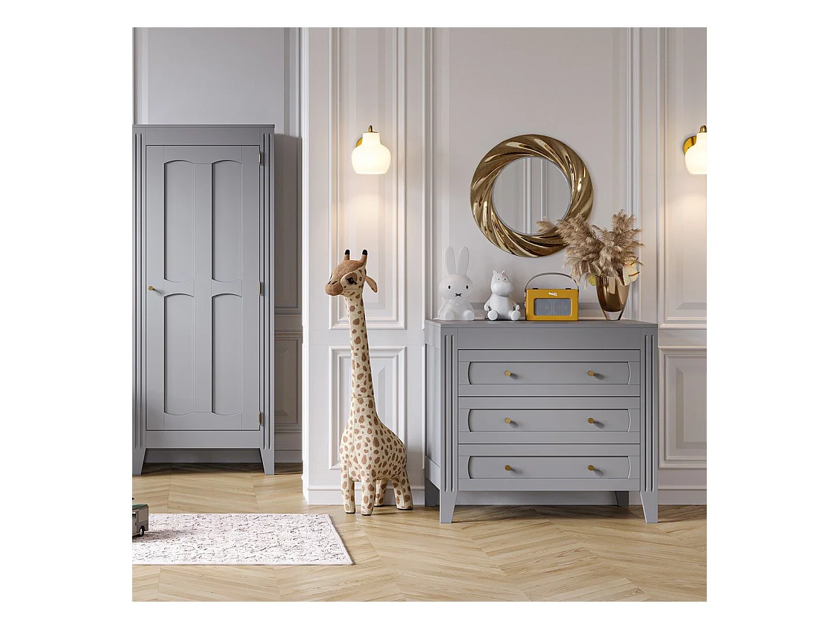 Driedeurs ladekast - 154 cm - grijs met gouden poten - VELLORE