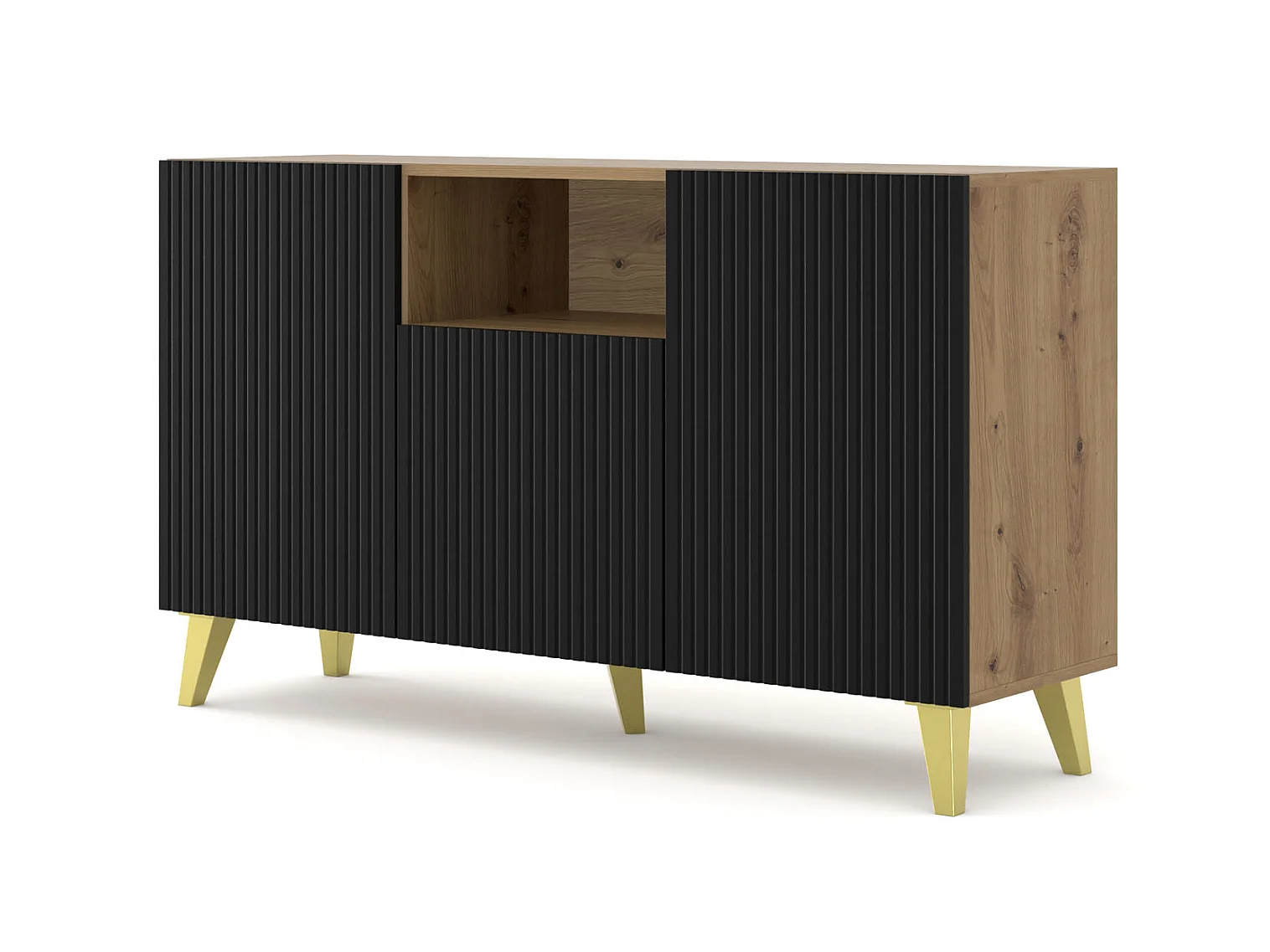 Dressoir met 2 deuren en 2 laden – ZANTE – 150 cm – zwart met groeven