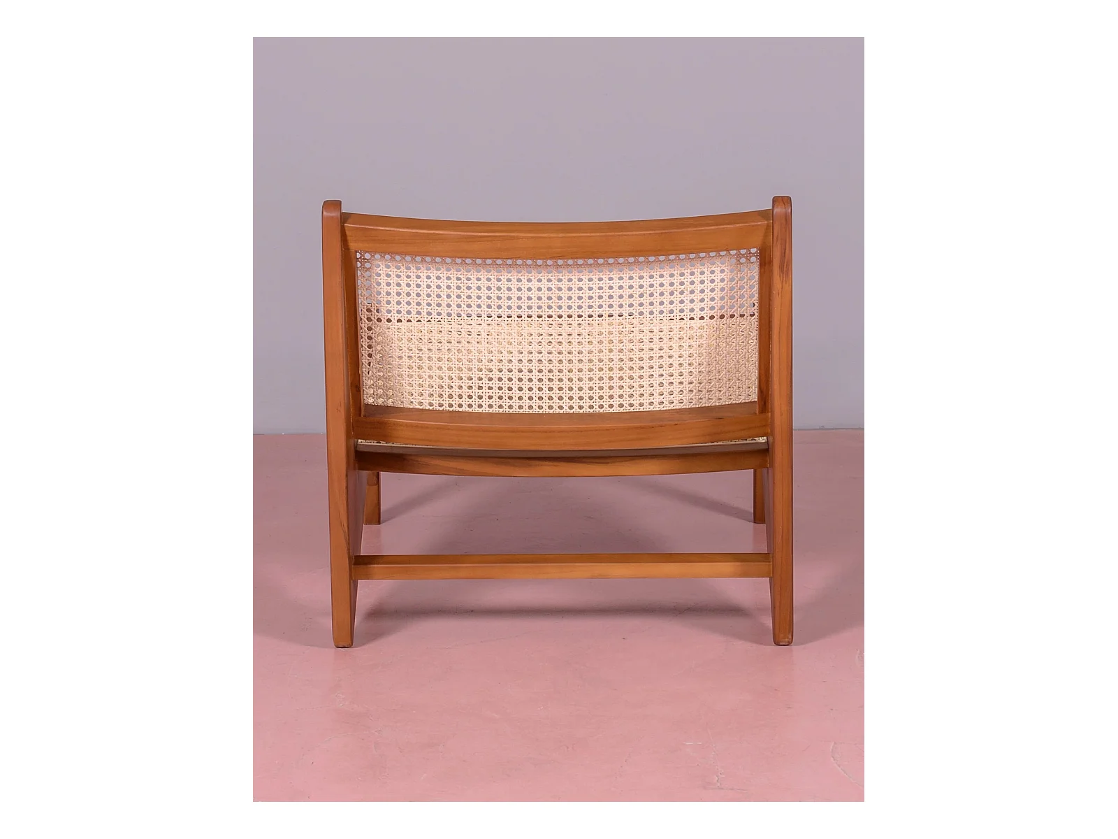 Lage fauteuil in teakhout en natuurlijk rotan - Compass - Teca