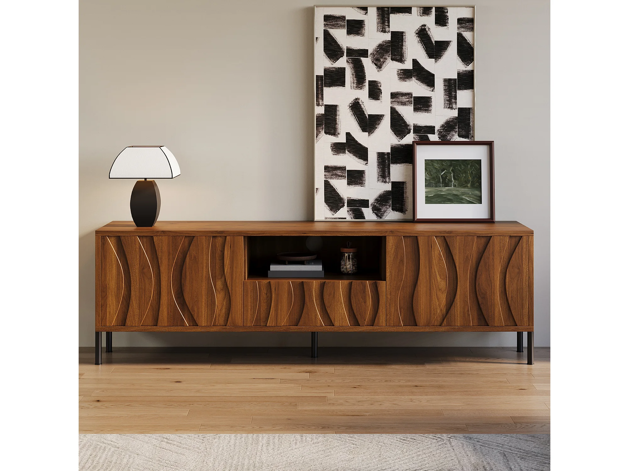 Vintage TV-meubel - 170 x 35 x 40 cm - met 1 lade + 3 deuren - uniek design - spaanplaat - natuurlijk